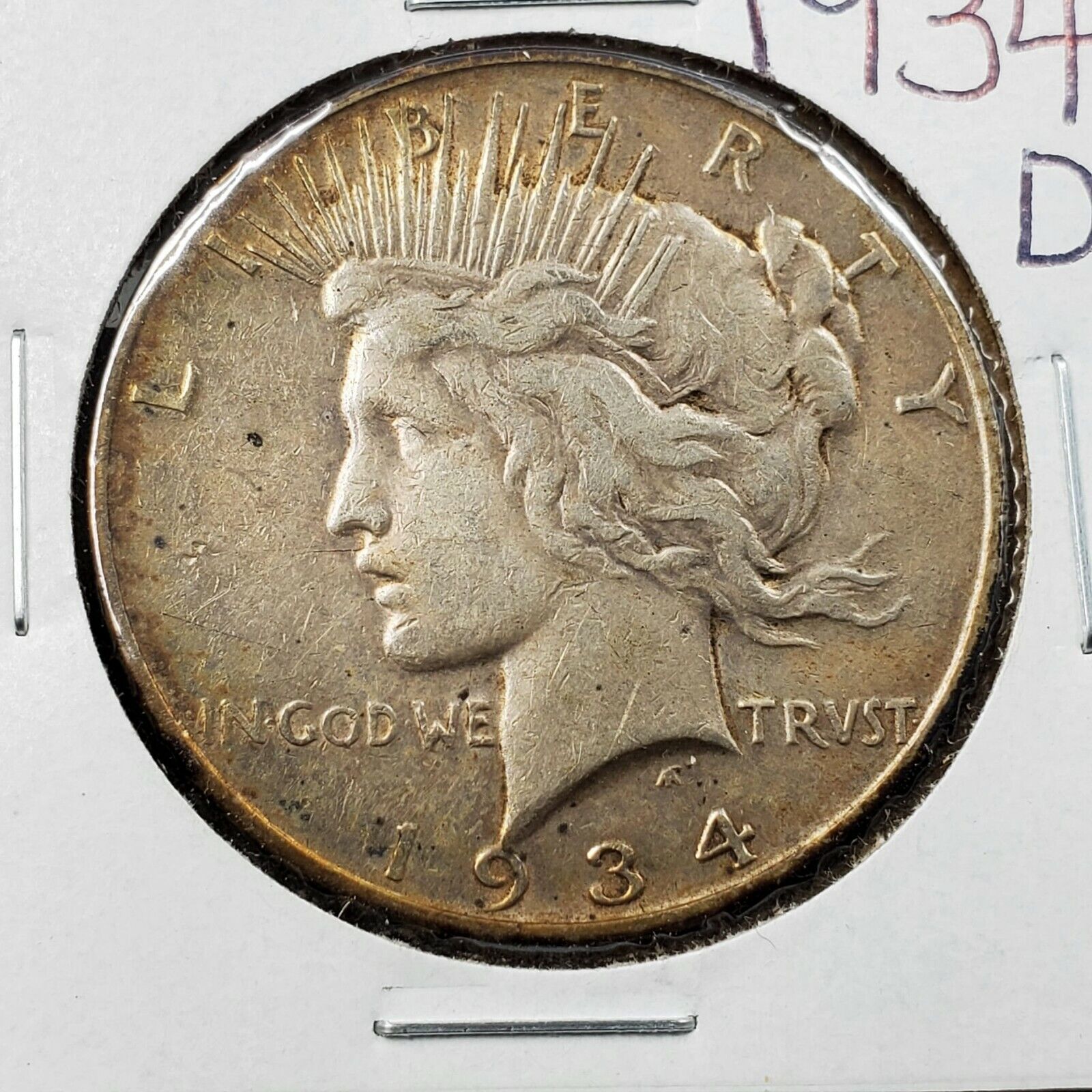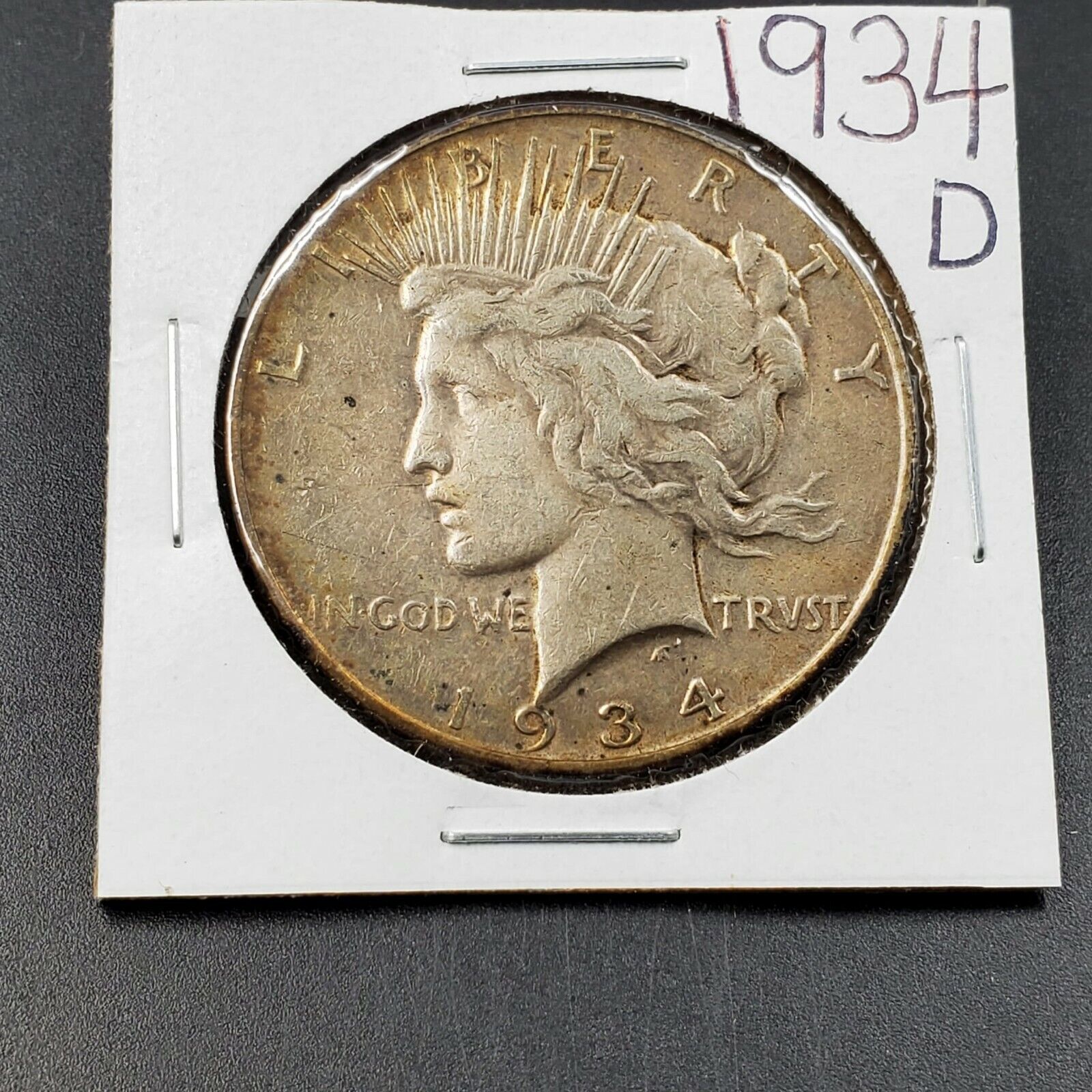 1934 D Peace 90% Silver Eagle Dollar Coin Choice VF Very Fine / EF XF Extra Fine