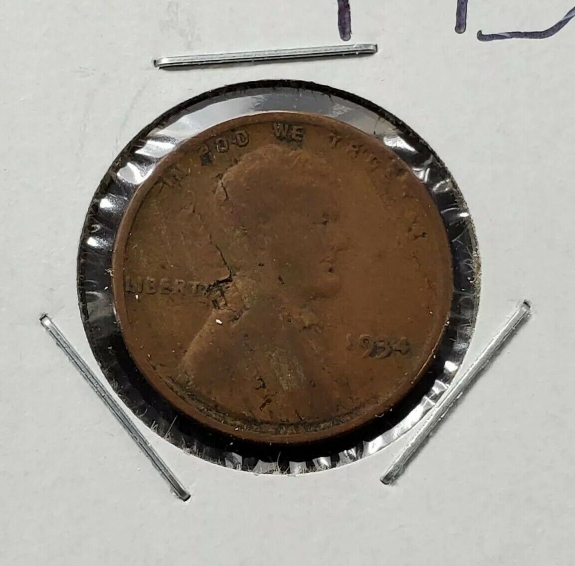 1934 P 1c Lincoln Wheat Cent Penny Coin Planchet Lamination Error