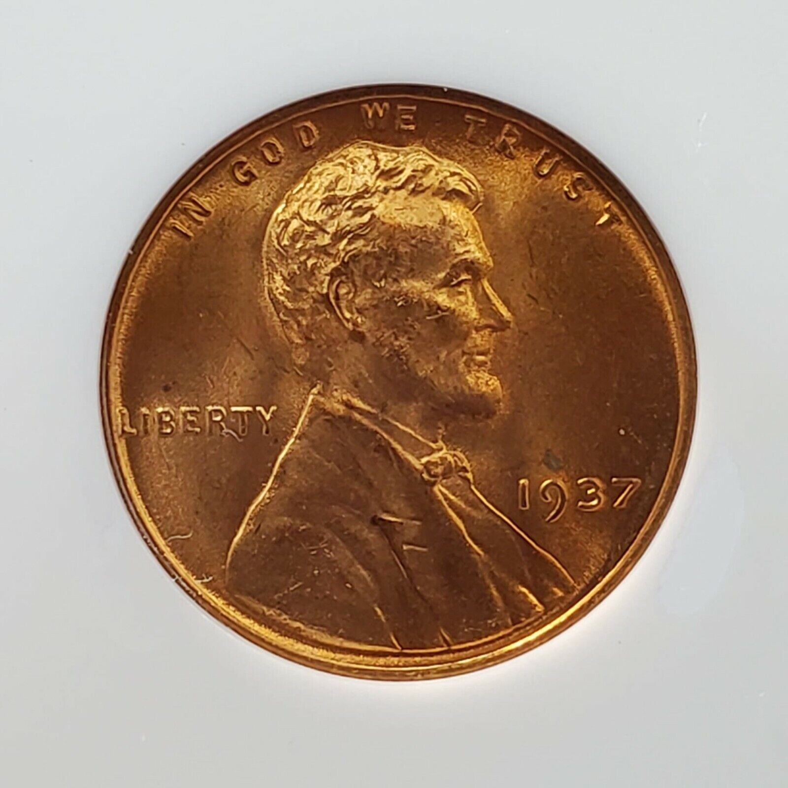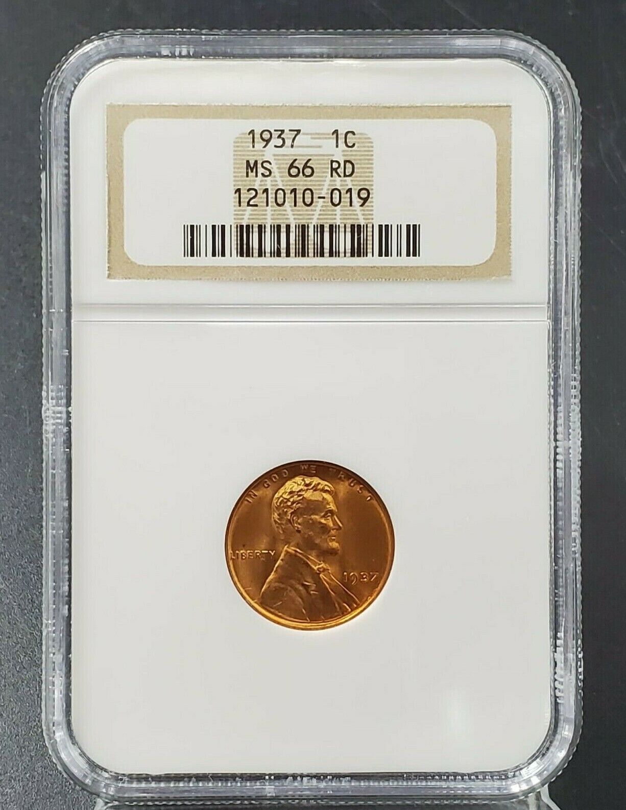 1937 P Lincoln Wheat Cent Penny Coin NGC MS66 RD RED Brown Label Holder #3