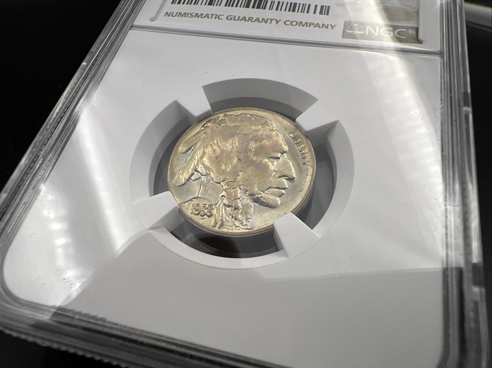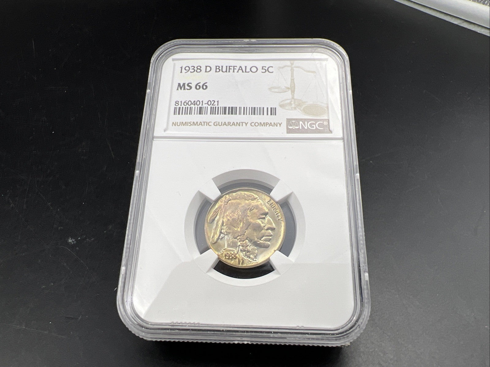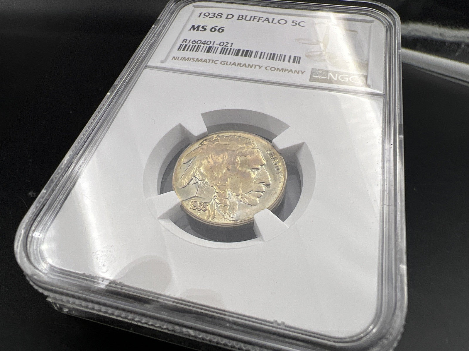 1938 D 5c Buffalo Nickel Coin GEM BU MS66 NGC PQ Toning Toner