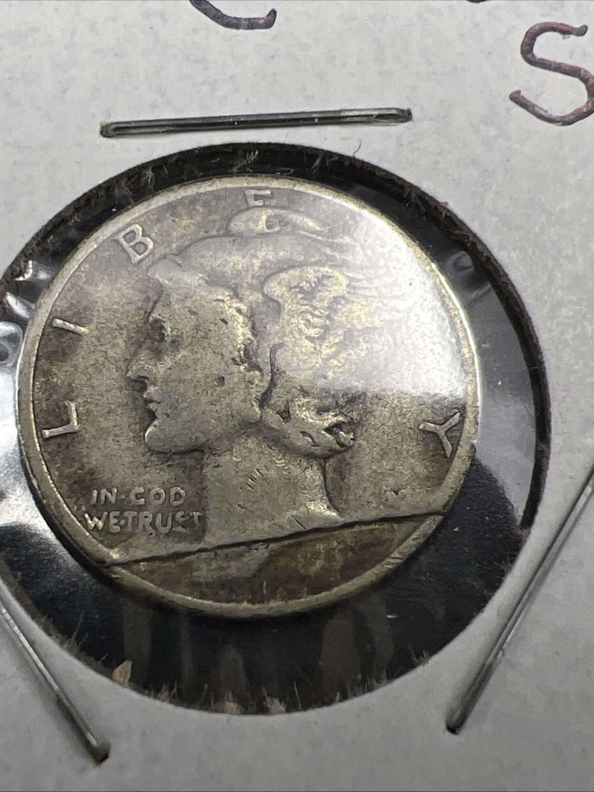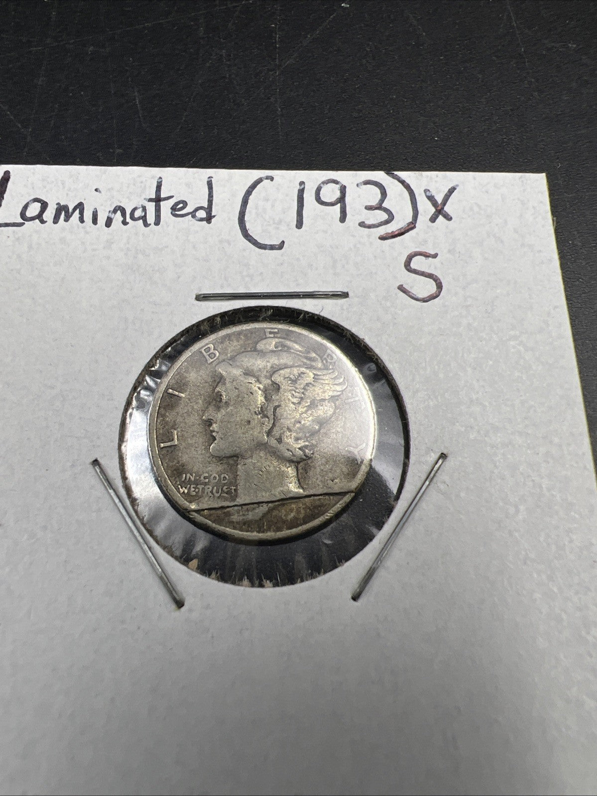 193X S Mercury Silver Dime Coin Major PLANCHET Lamination Error Coin Circulated