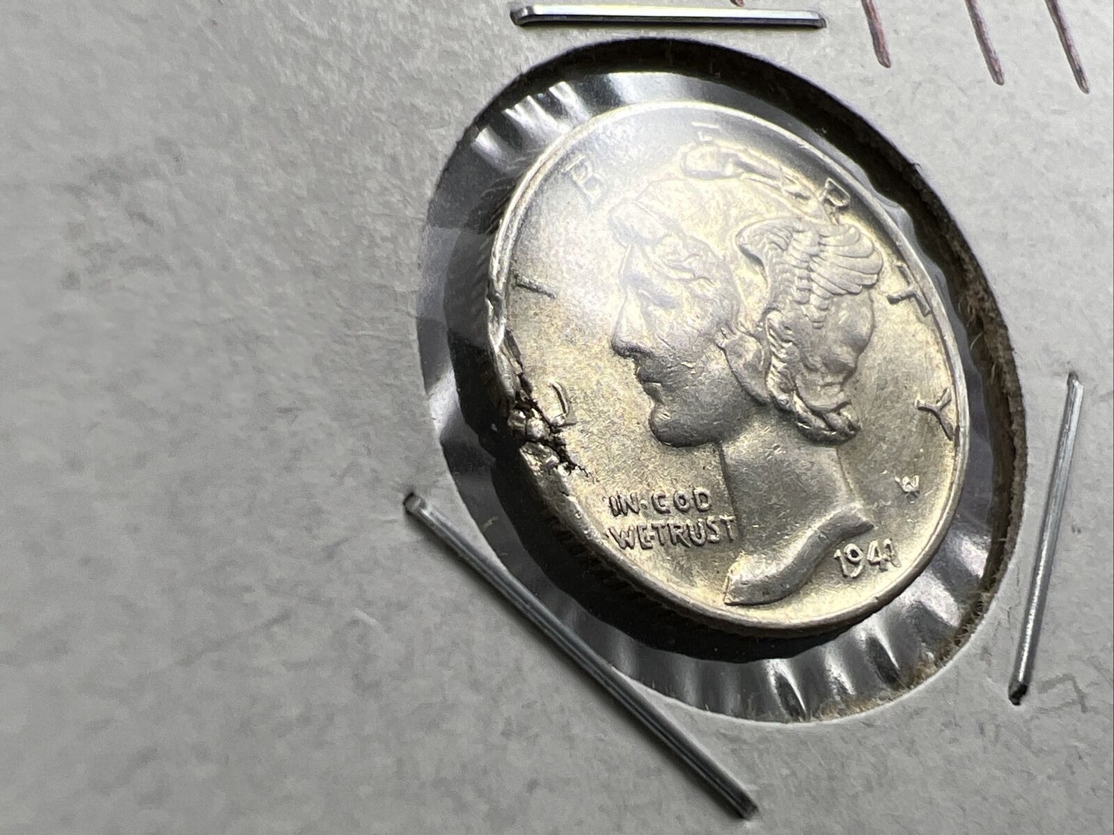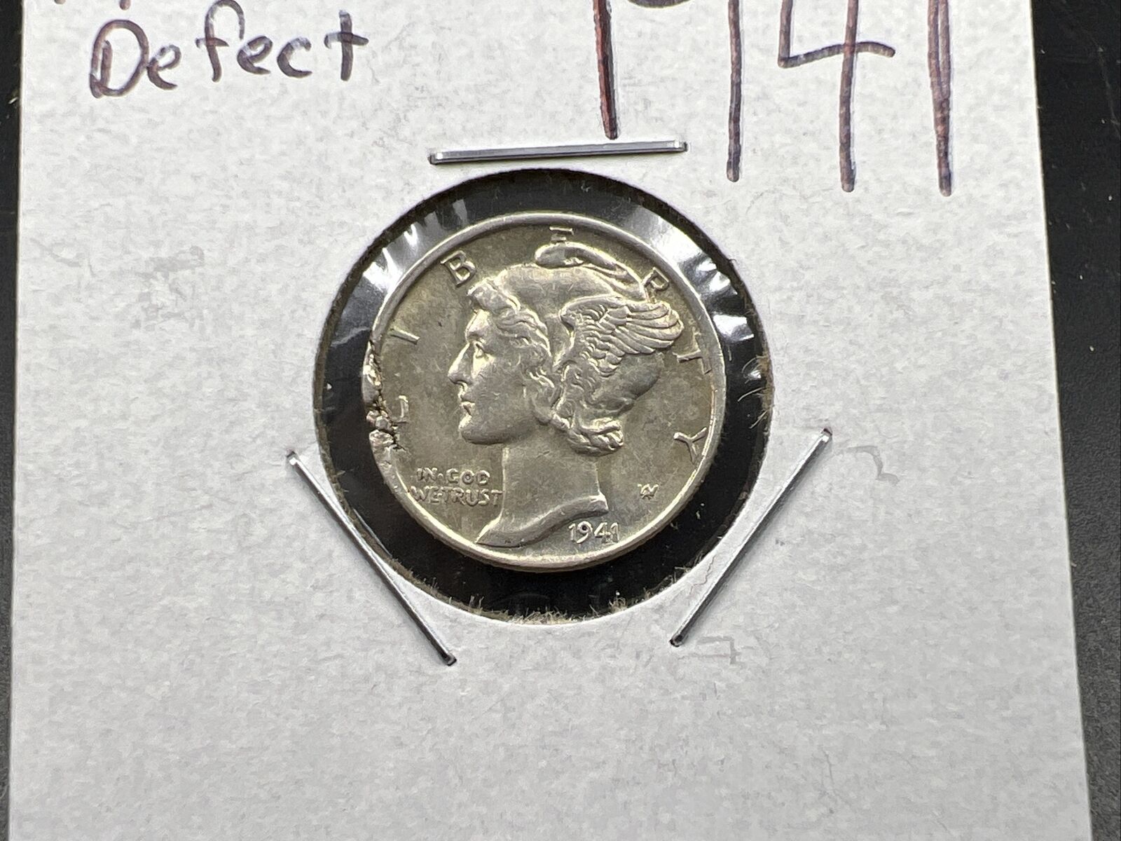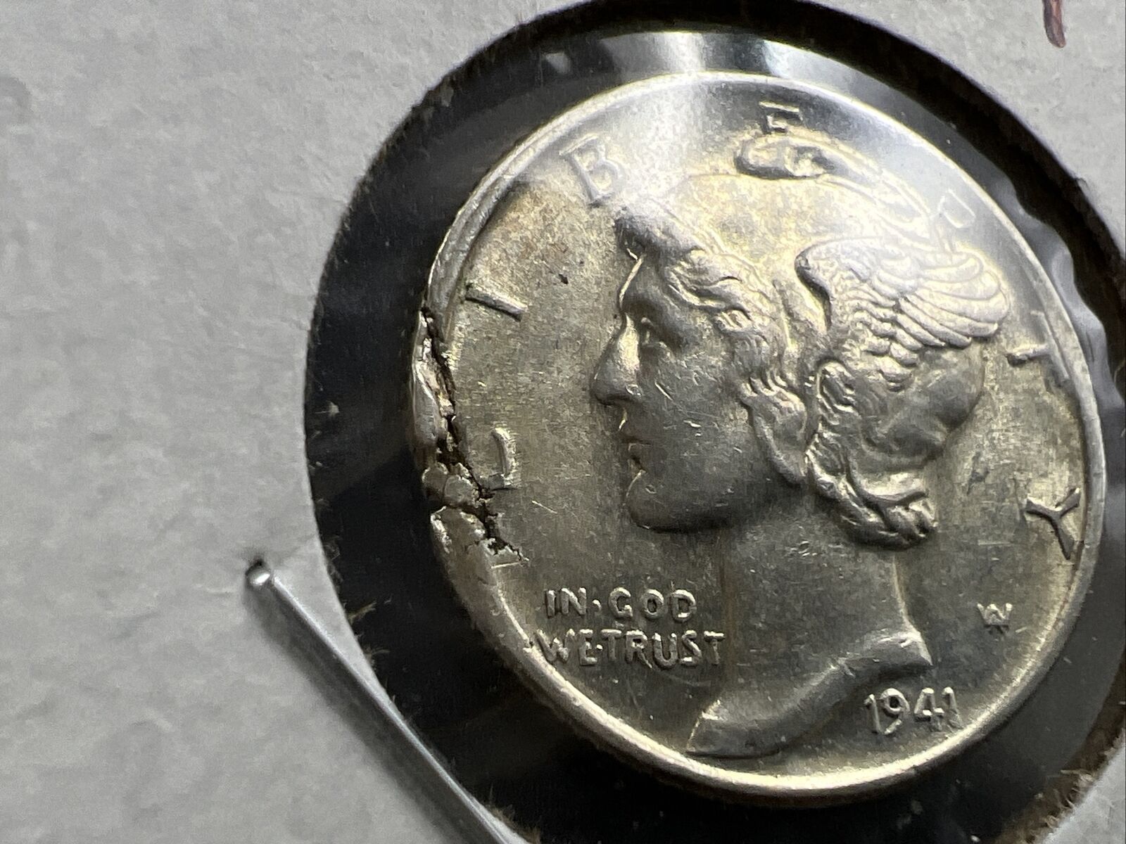 1941 P Mercury Silver Dime Coin w/ Major Planchet Flaw Error AU About UNC
