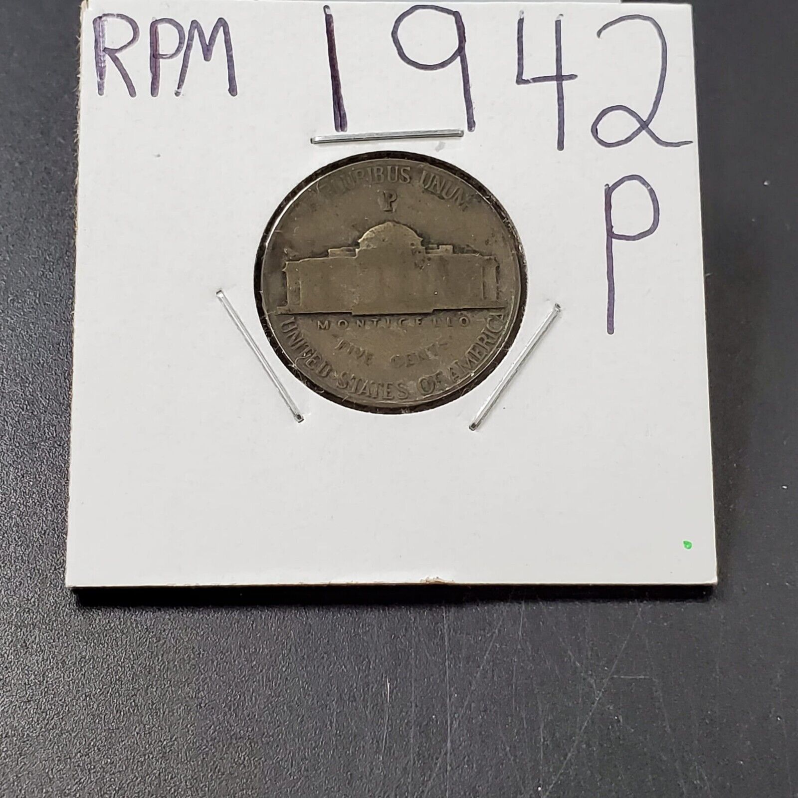 1942 P Jefferson Silver War Nickel Variety Coin RPM Circulated Condition