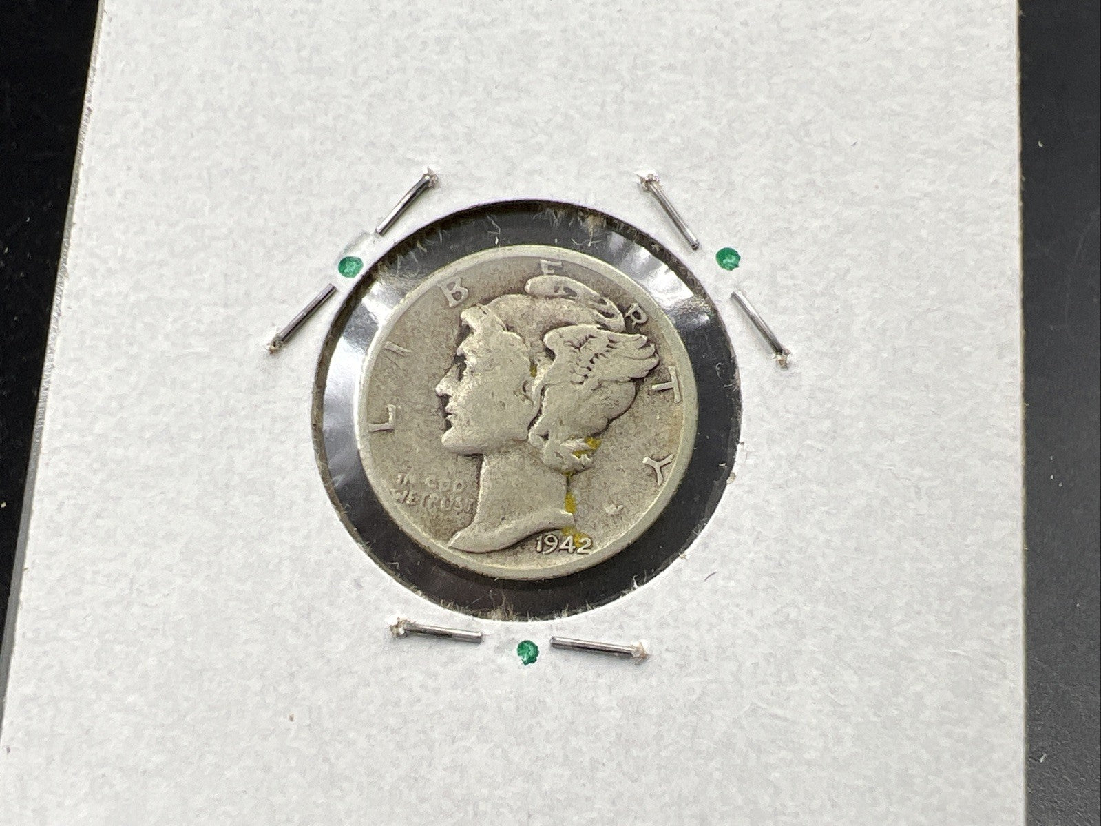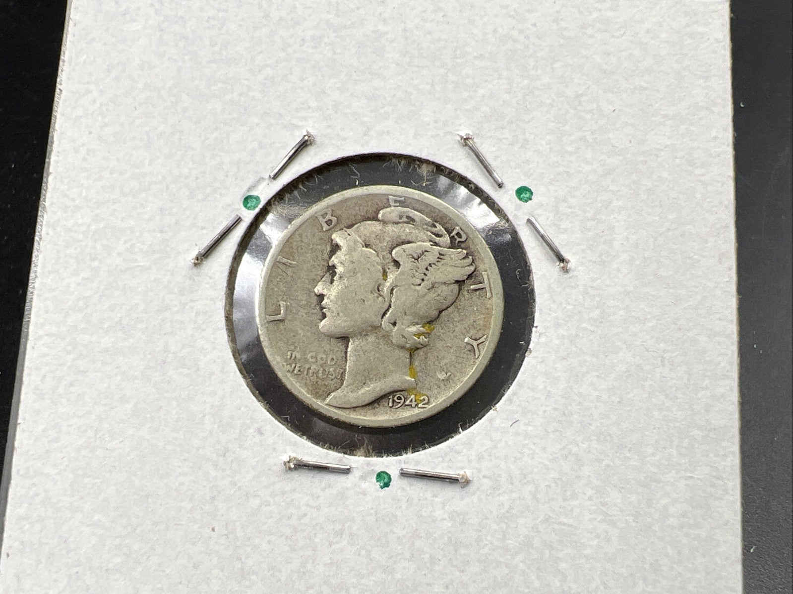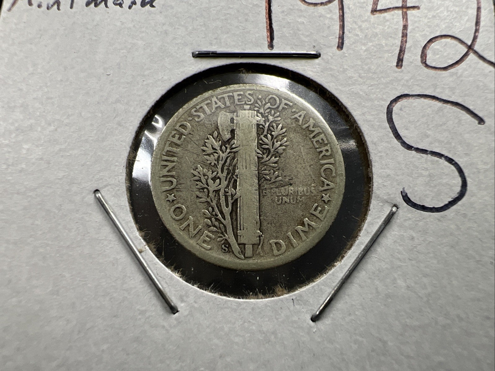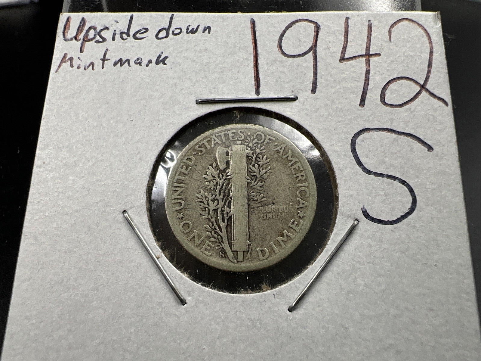 1942 S 10c Mercury Silver Dime Coin Upside down Mint Mark Variety Very Circulated