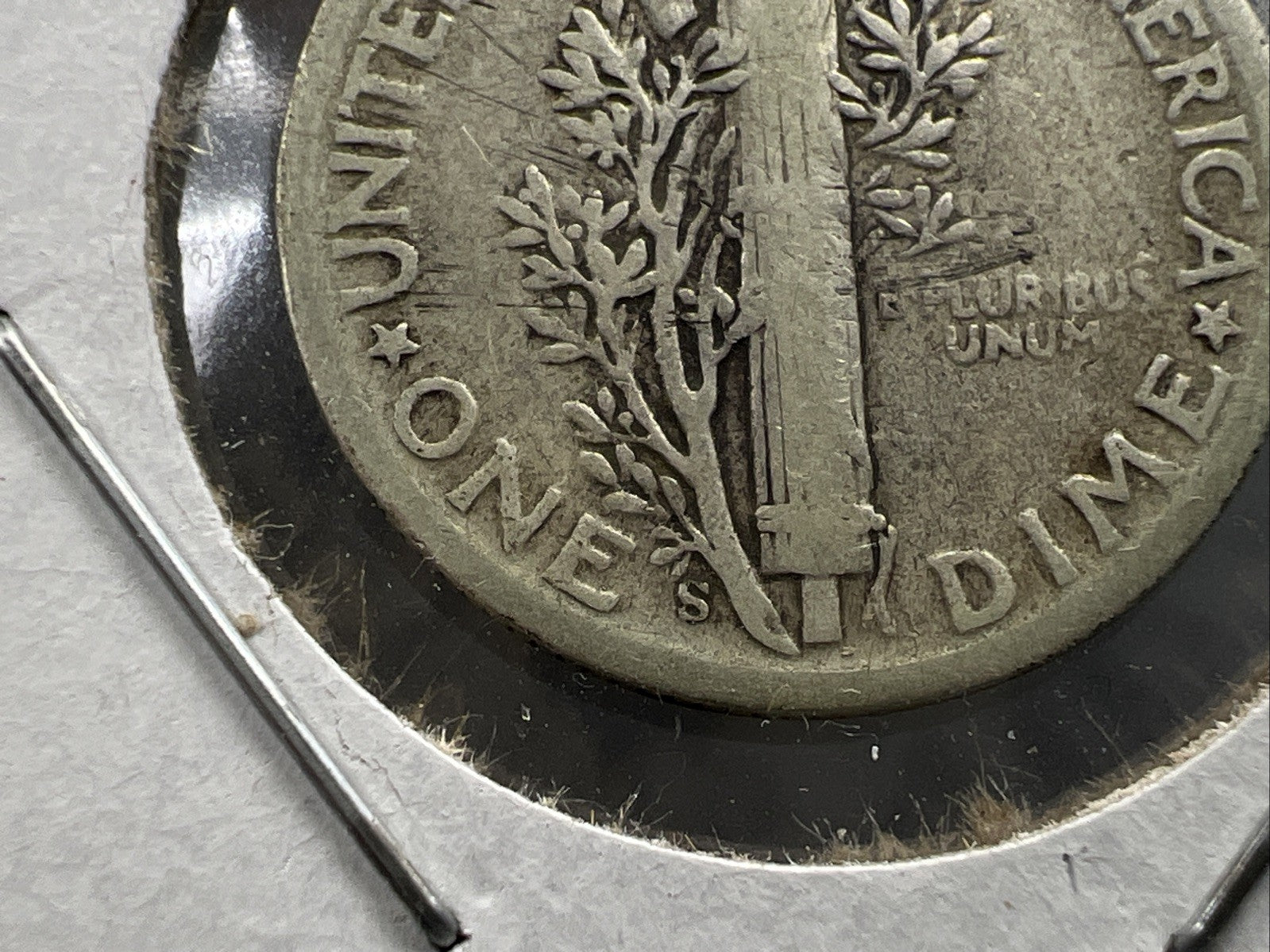1942 S 10c Mercury Silver Dime Coin Upside down Mint Mark Variety Very Circulate