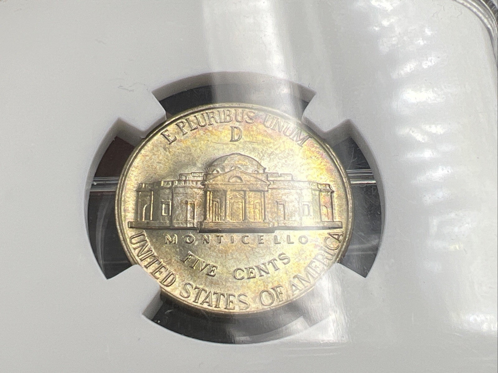 1943 D 5c Jefferson 35% Silver War Nickle NGC MS66 Gem BU Nice Toning Reverse