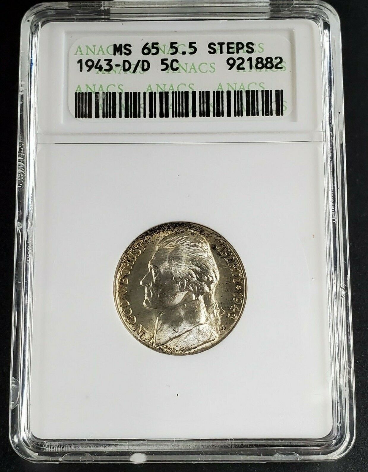 1943 D D/D Jefferson Nickel Coin Variety ANACS MS65 5.5 Full Step 5FS RPM FS-501