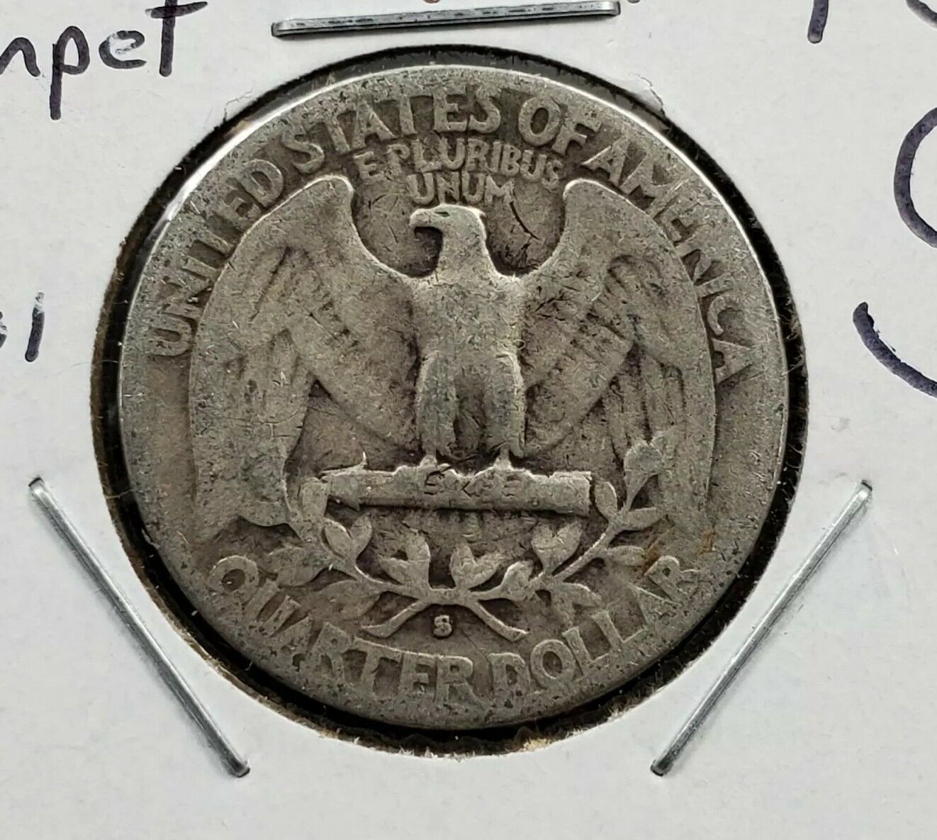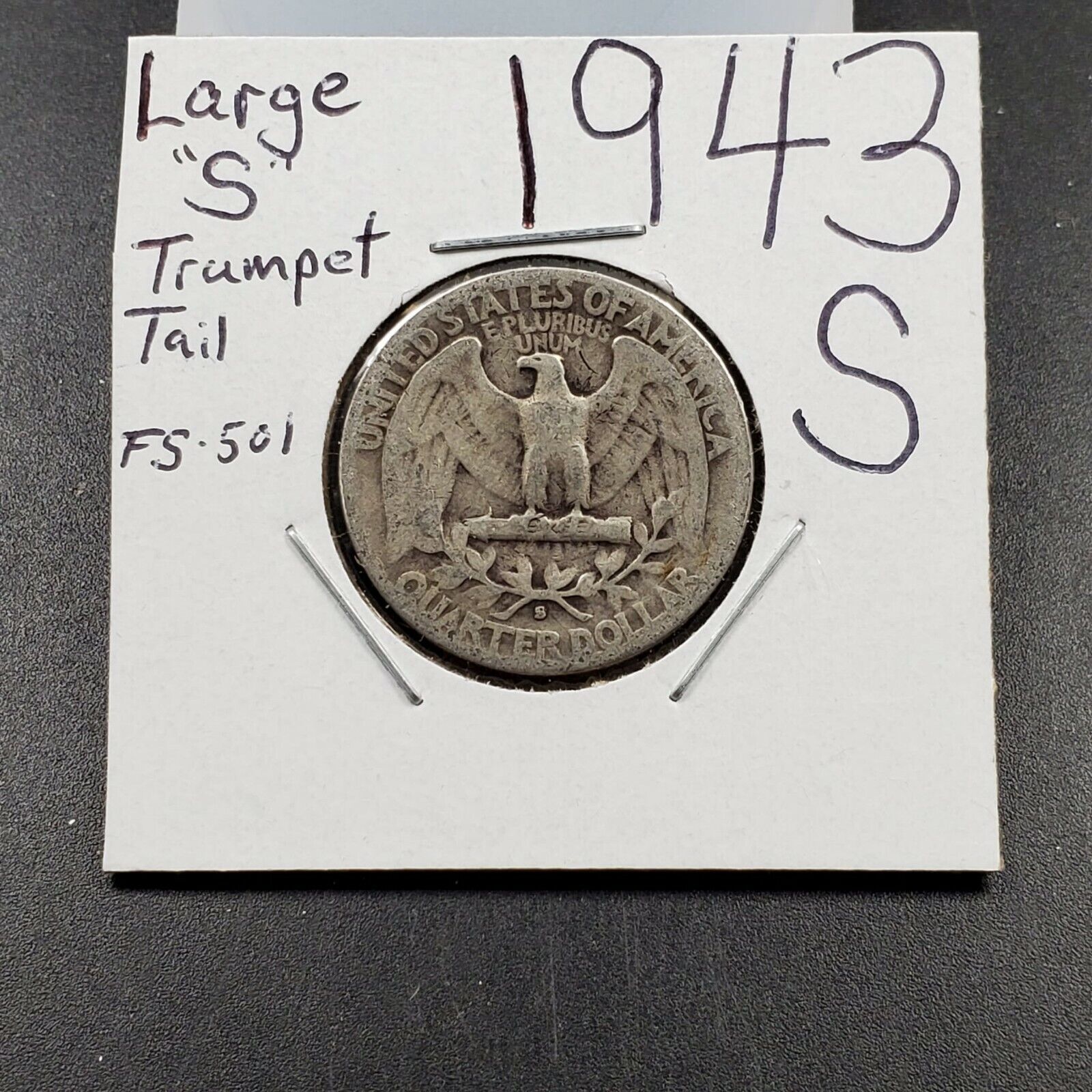 1943 S 25C Washington Quarter Silver WW2 Coin Trumet Tail MM Variety AG / Good