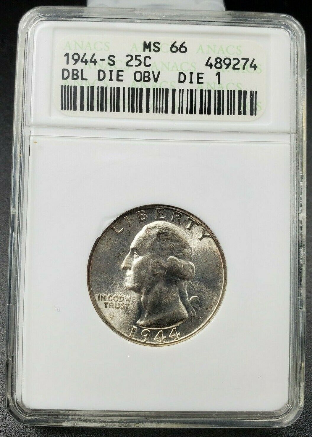 1944 S 25c Washington Silver Quarter Variety ANACS MS66 DDO 001 FS-101 Double Dy