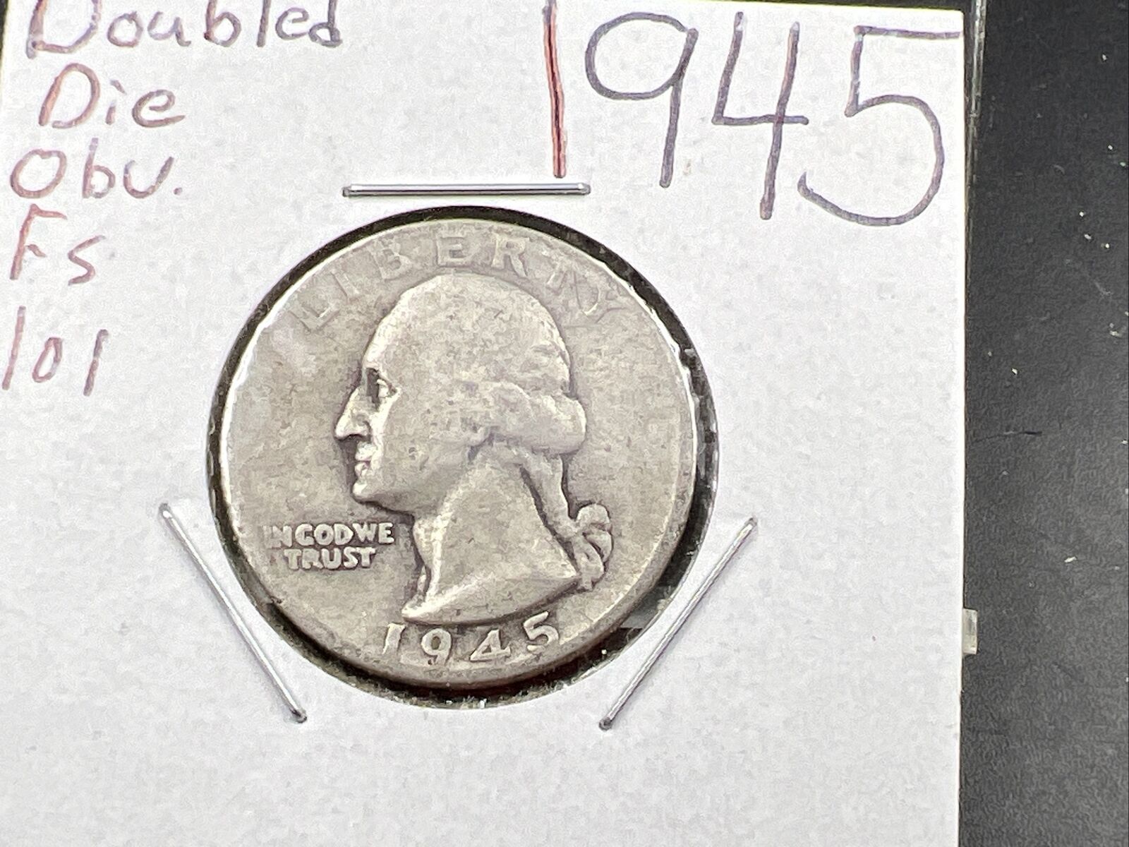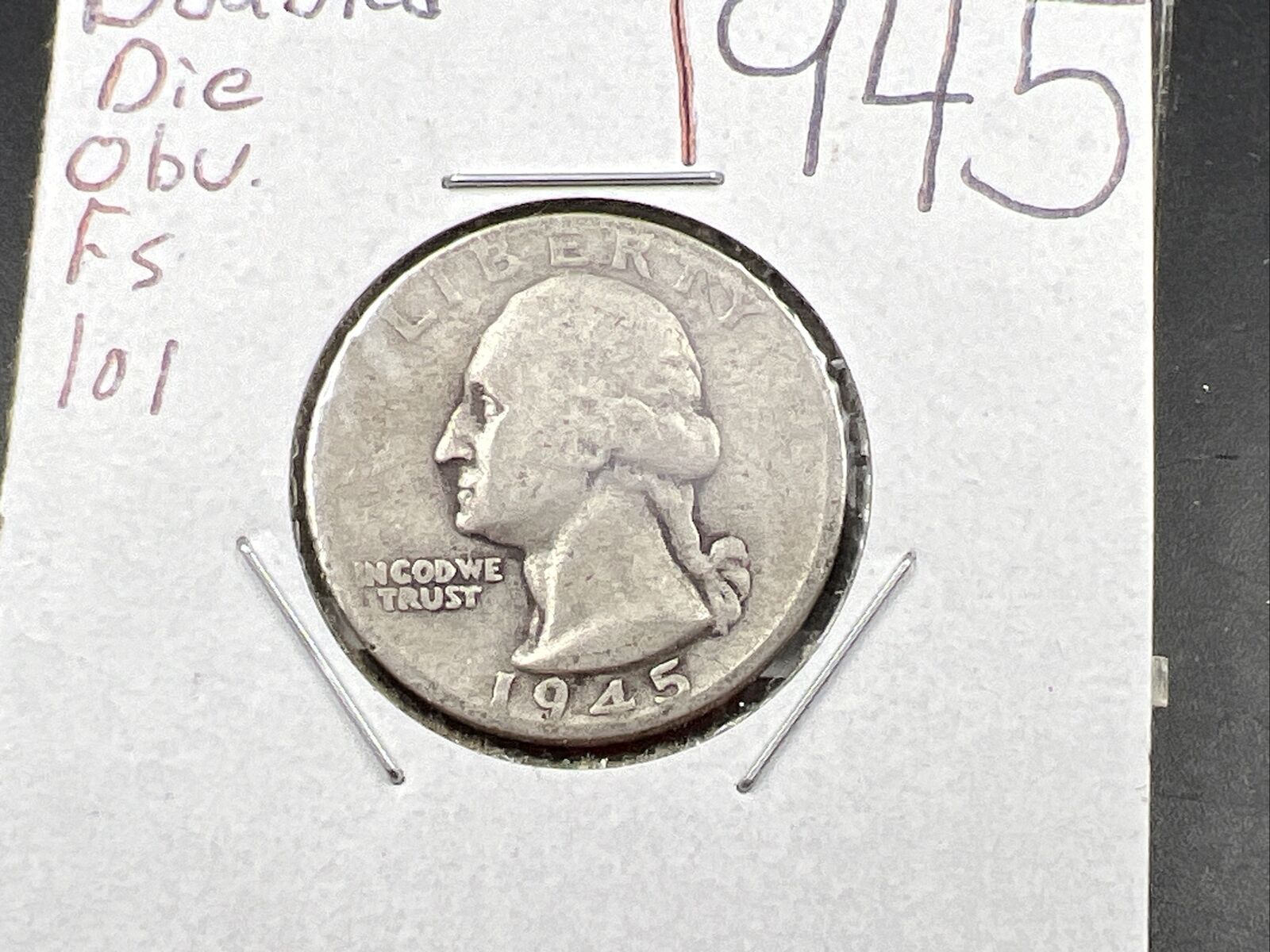 1945 P 25c Washington Quarter Coin Choice AU About Good FS-101 DDO Variety