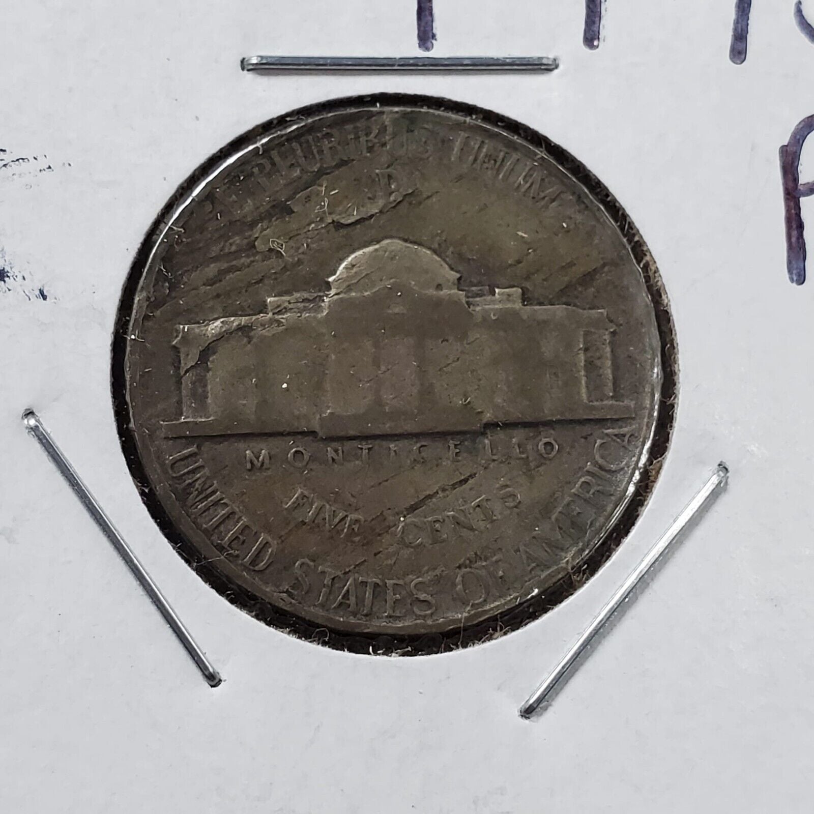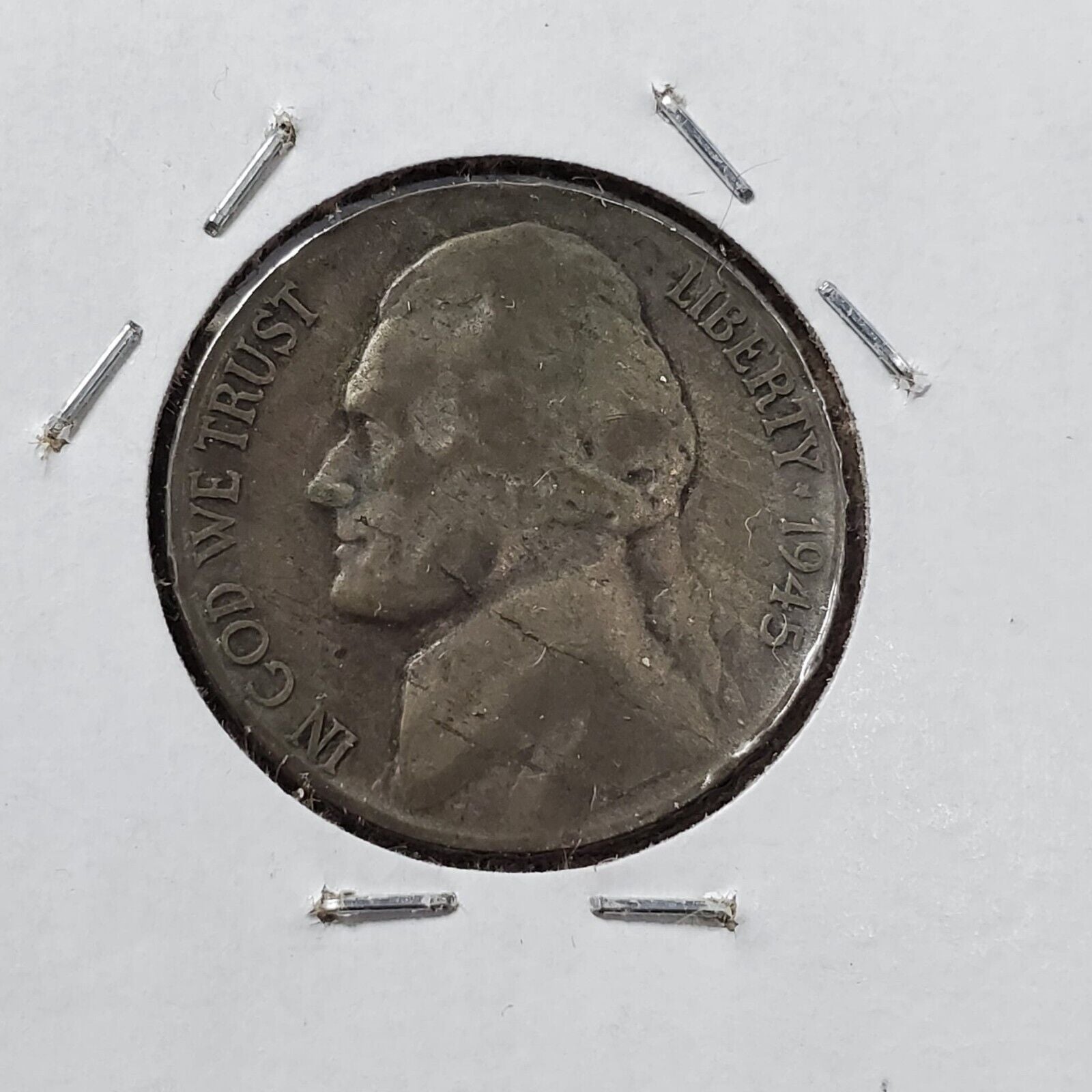 1945 P JEFFERSON NICKEL Major LAMINATED PLANCHET ERROR Circulated 2