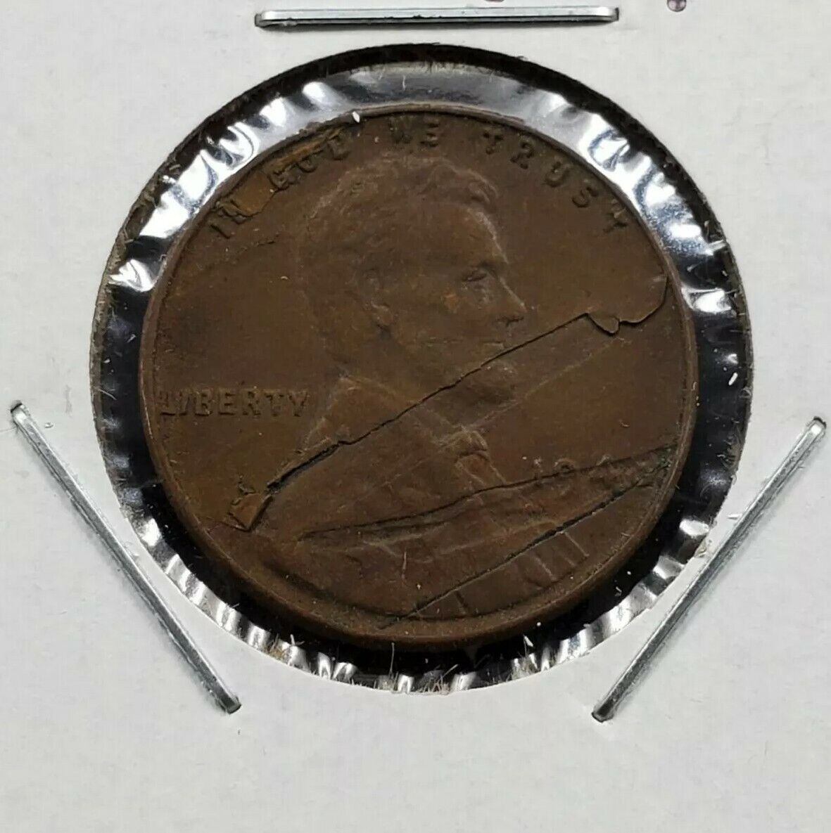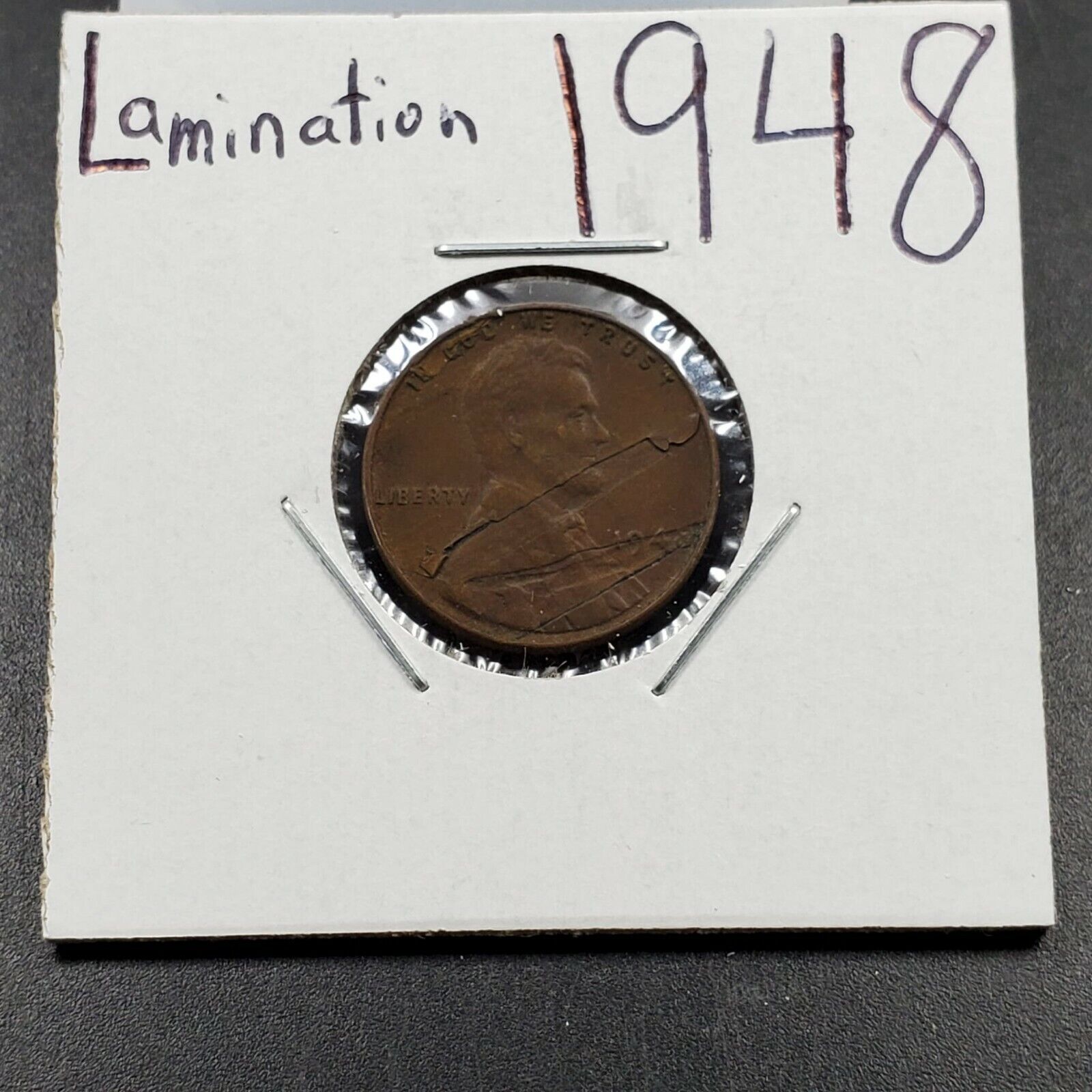 1948 p 1c Lincoln Wheat Cent Penny Coin Laminated Planchet Error