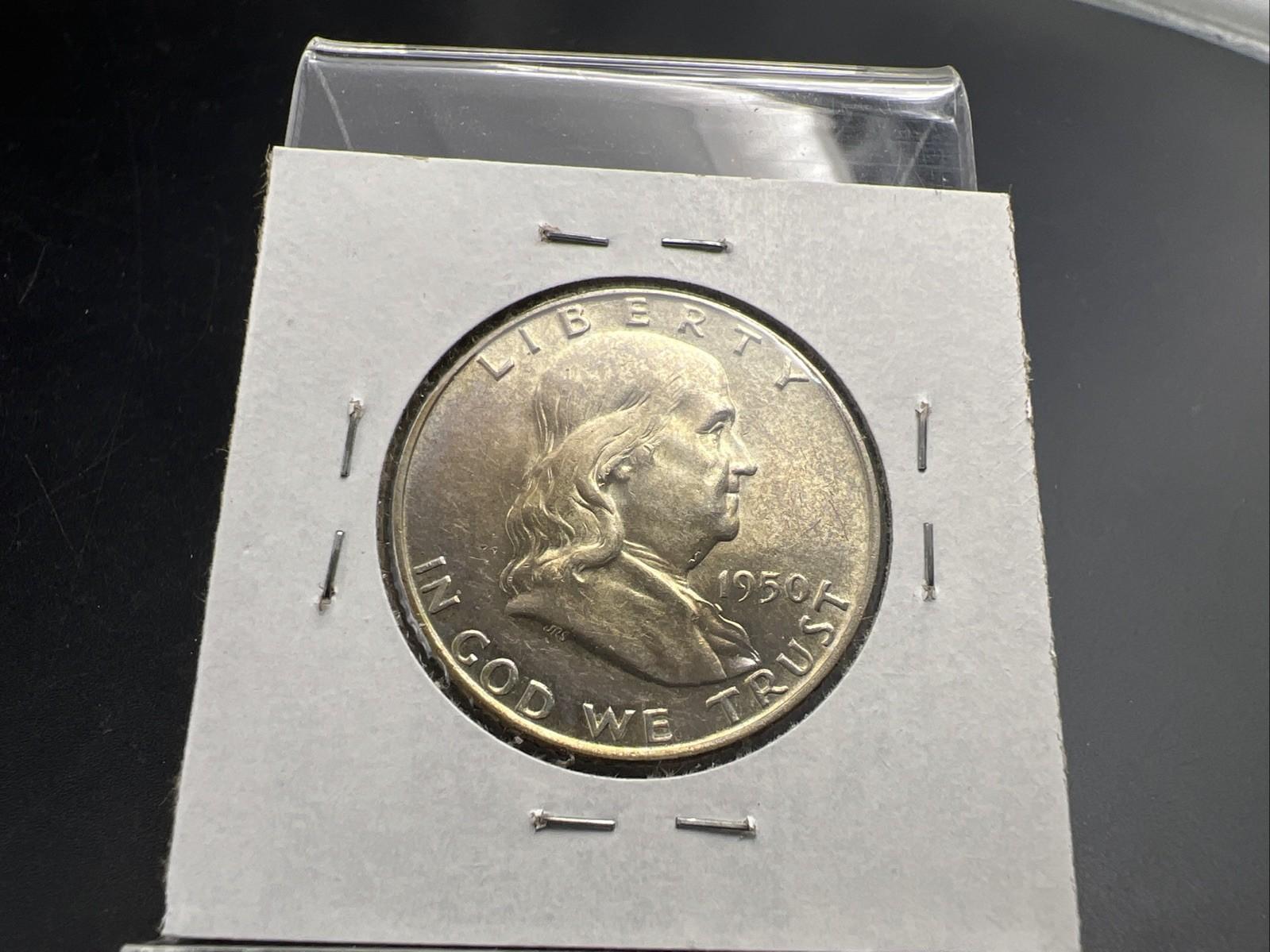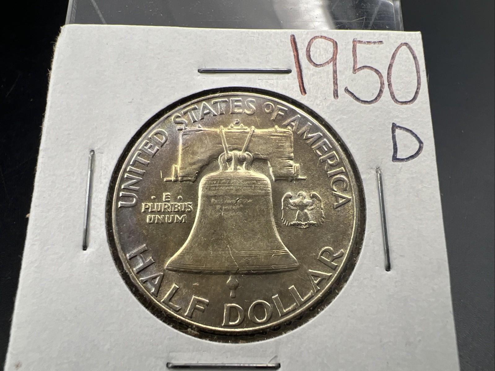1950 D Franklin Half Dollar Silver Coin CH AU Nice Toning Toner SKU#A