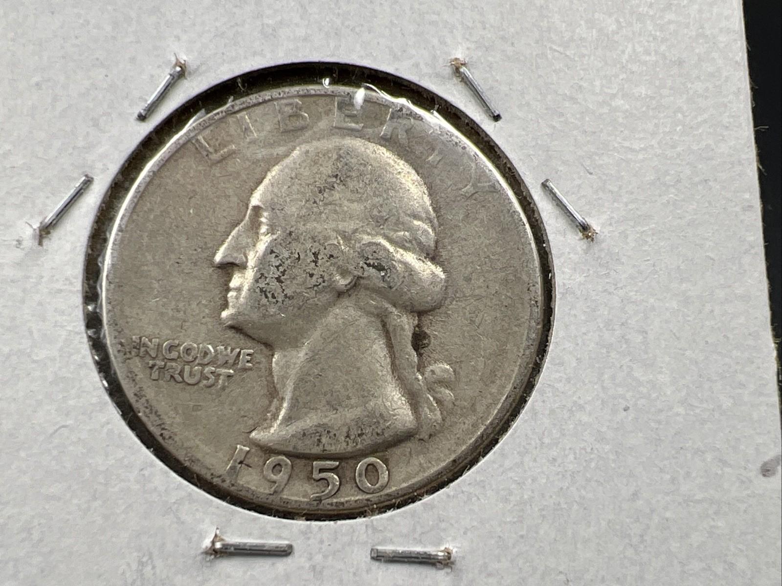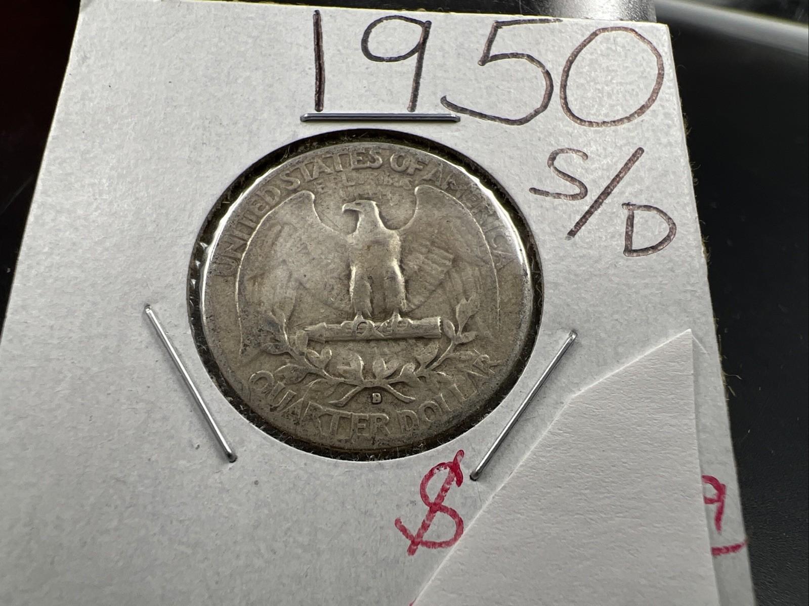 1950 S / D OMM Variety 25c Washington Silver Quarter Coin AG About Good