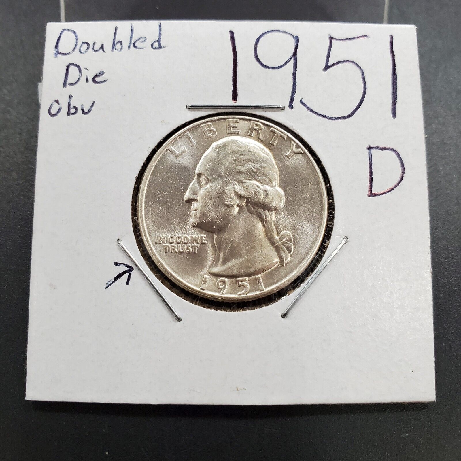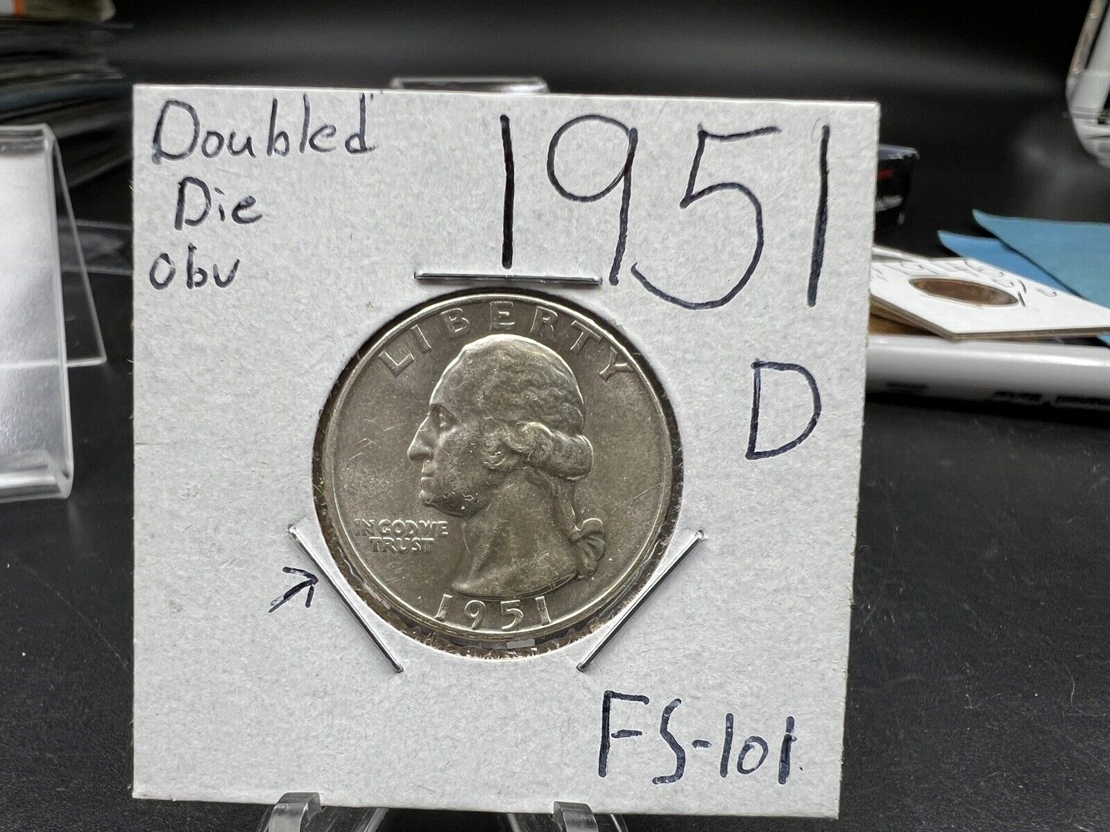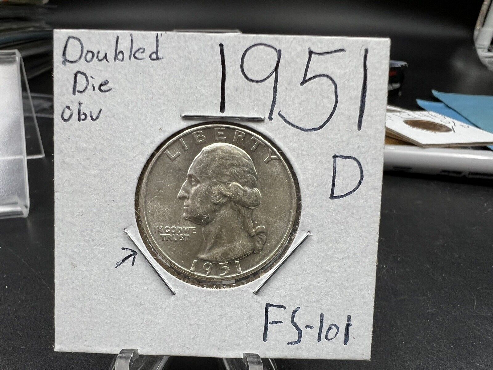 1951 D 25c Washington Silver Quarter Coin FS-101 Double Die Obverse Variety BU