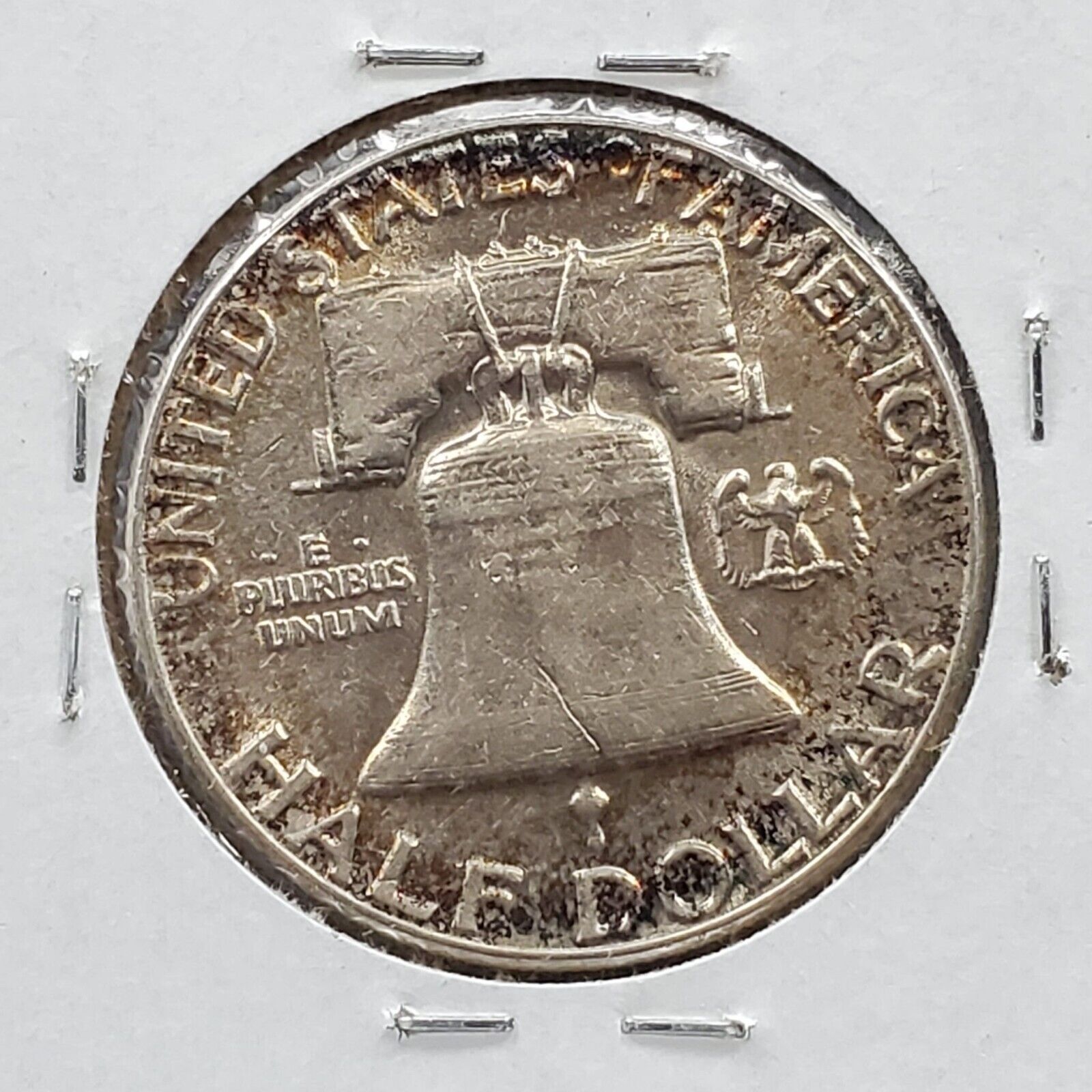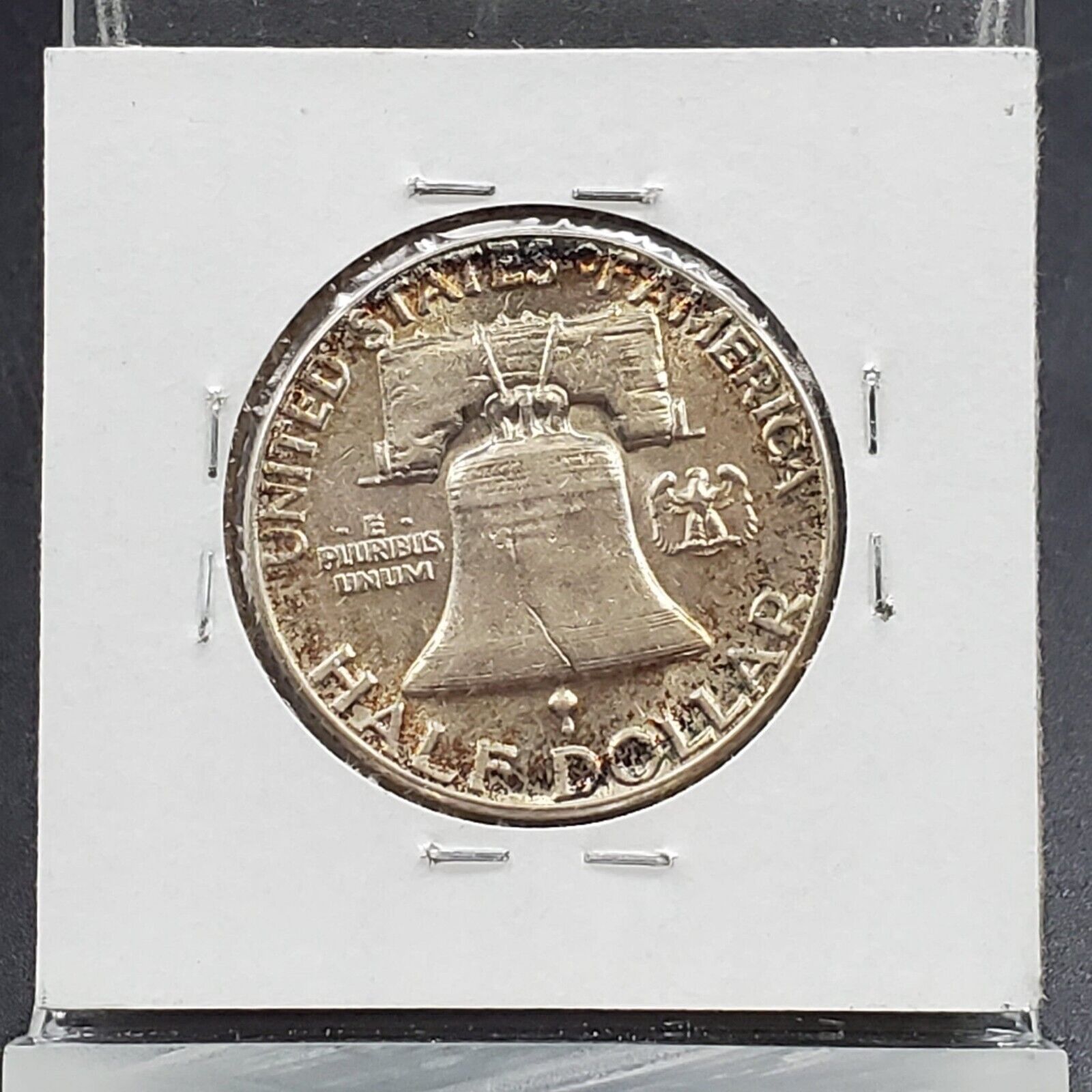 1951 P Franklin Silver 90% Half Dollar Coin AU about UNC Neat Toning Toner