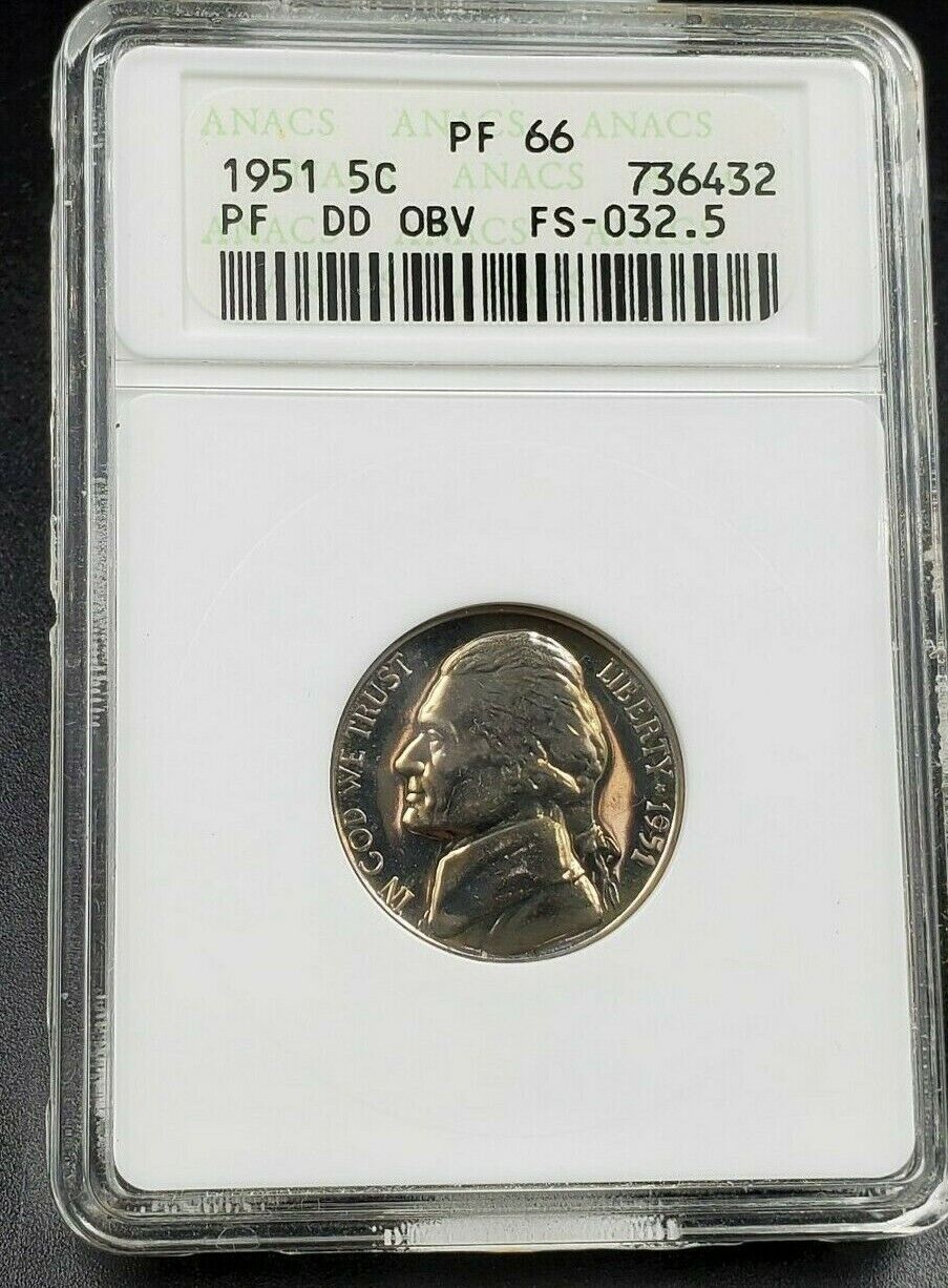 1951 Proof Jefferson Nickel Variety ANACS PF66 DDO FS-032.5 FS-101 Double Die