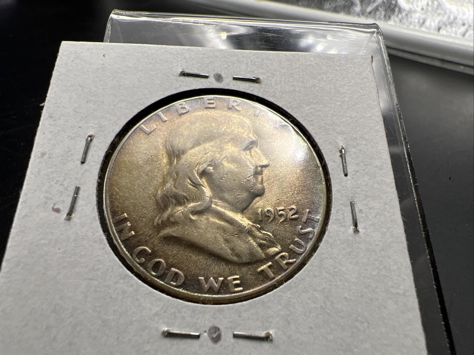 1952 P Franklin Half Dollar Silver Coin Circ Nice Toning Toner Rainbow Rev SKU#A