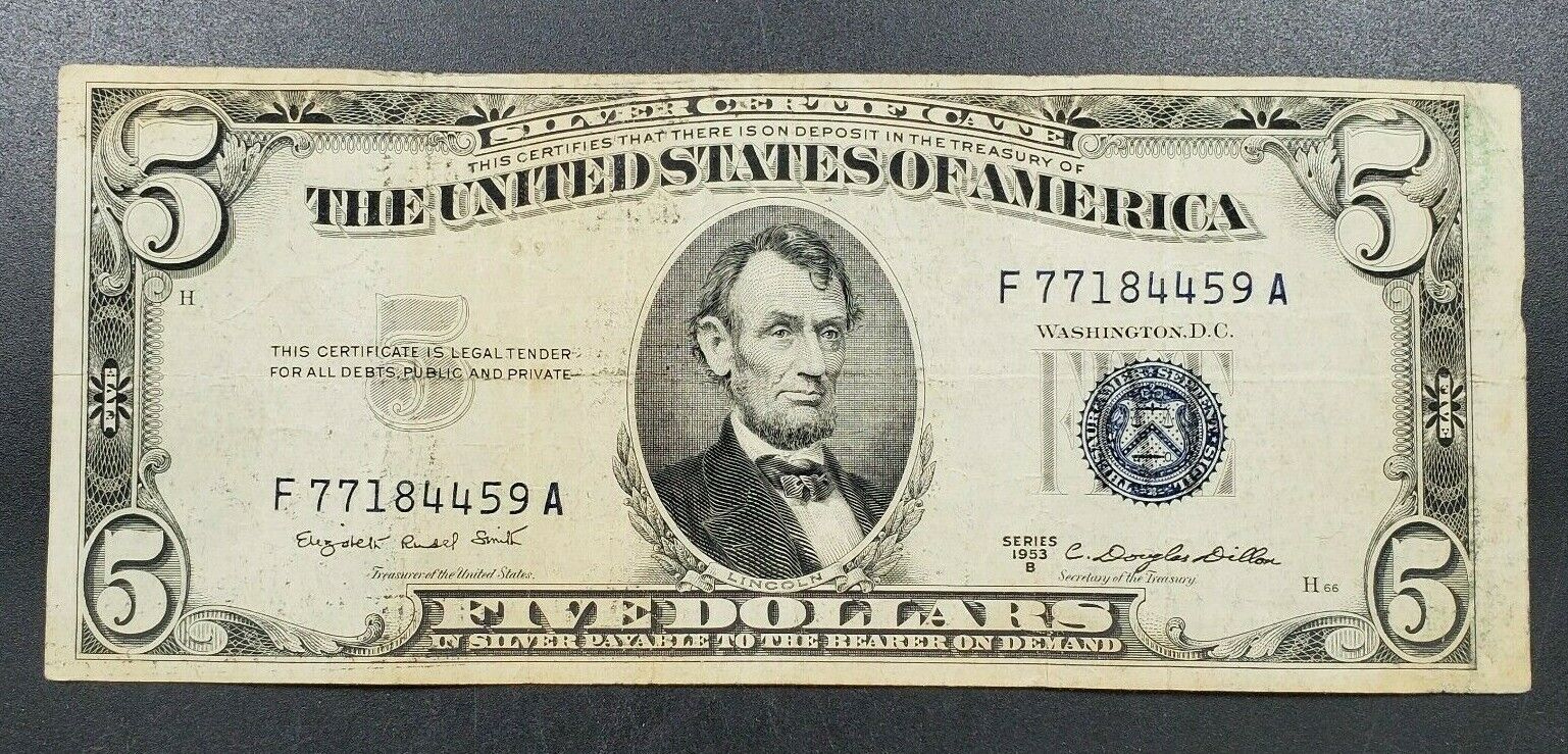 1953 $5 Silver Certificate Blue Seal VF VERY FINE Circ DOUBLE REPEAT SERIAL # 💵