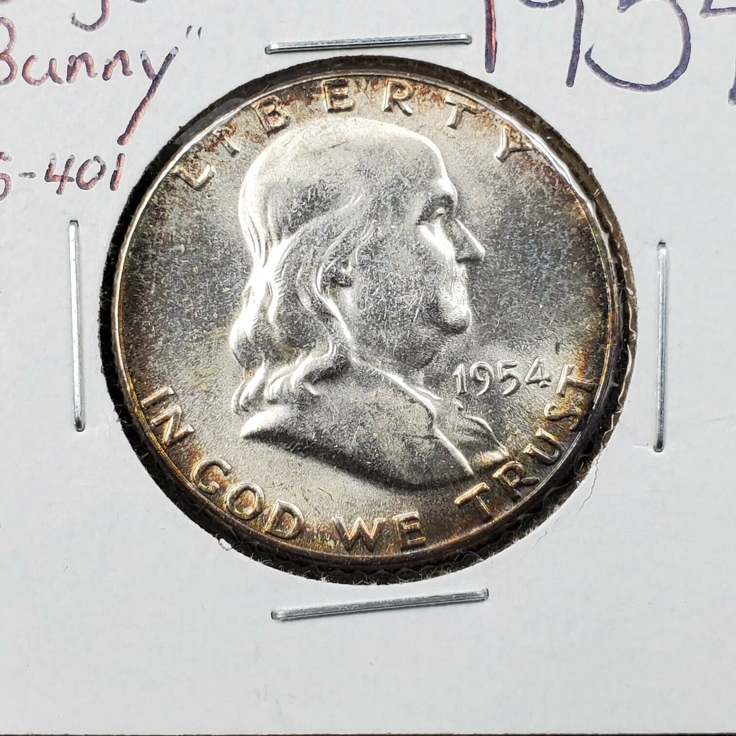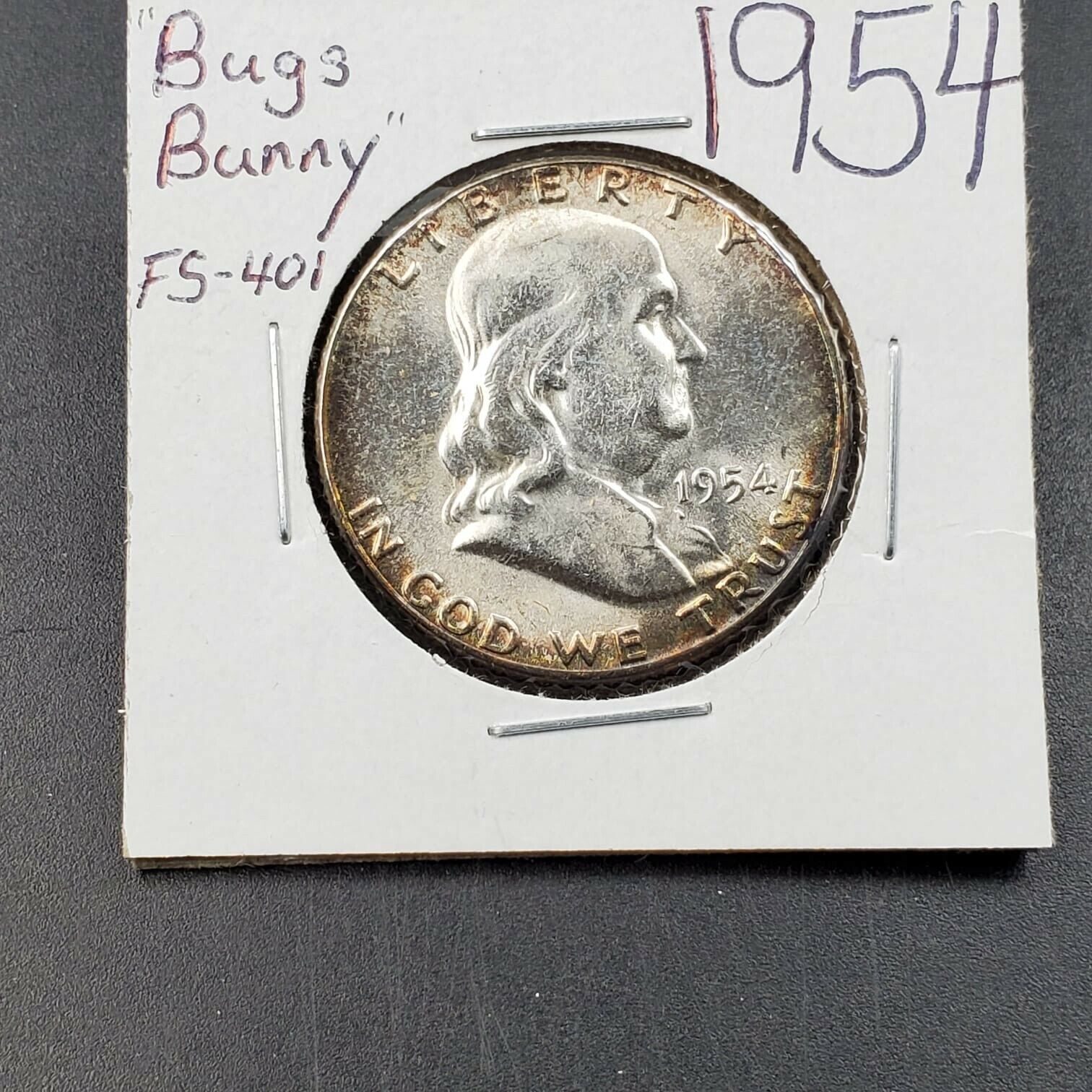 1954 P Franklin Silver 90% Half Dollar Coin CH BU UNC Bugs Bunny FS-401 Variety