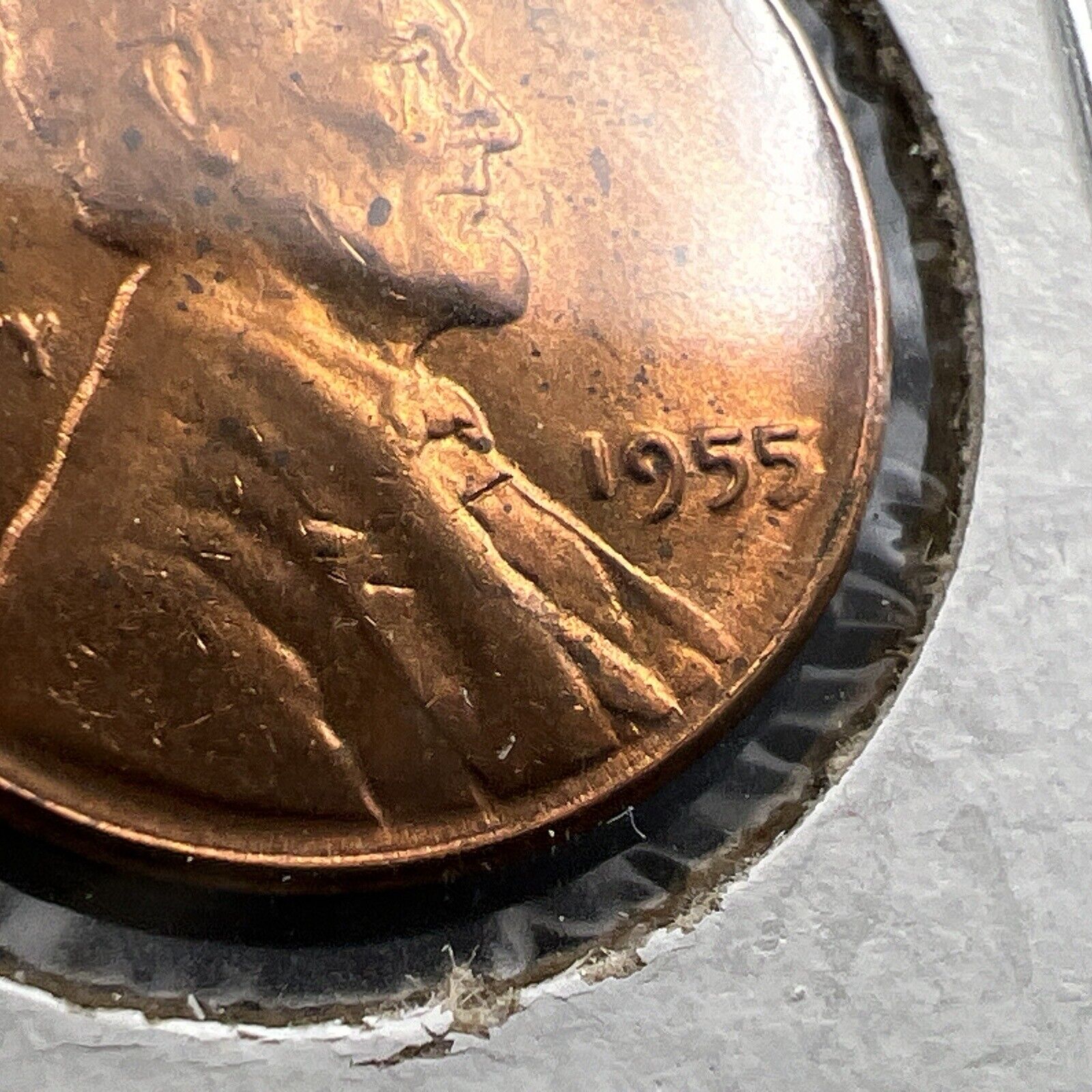 1955 P 1c Lincoln Wheat Cent Penny Coin Poor Man Strike Double Die BU RB #AB