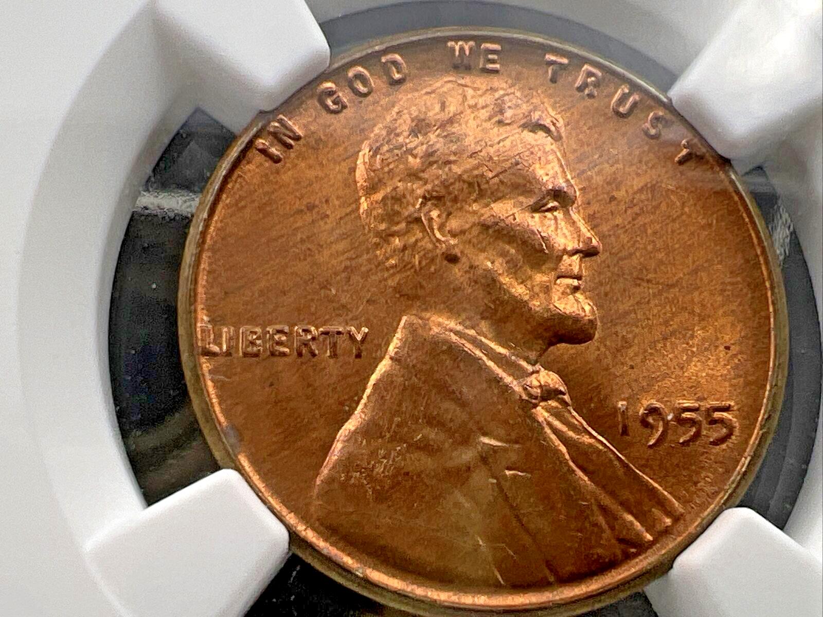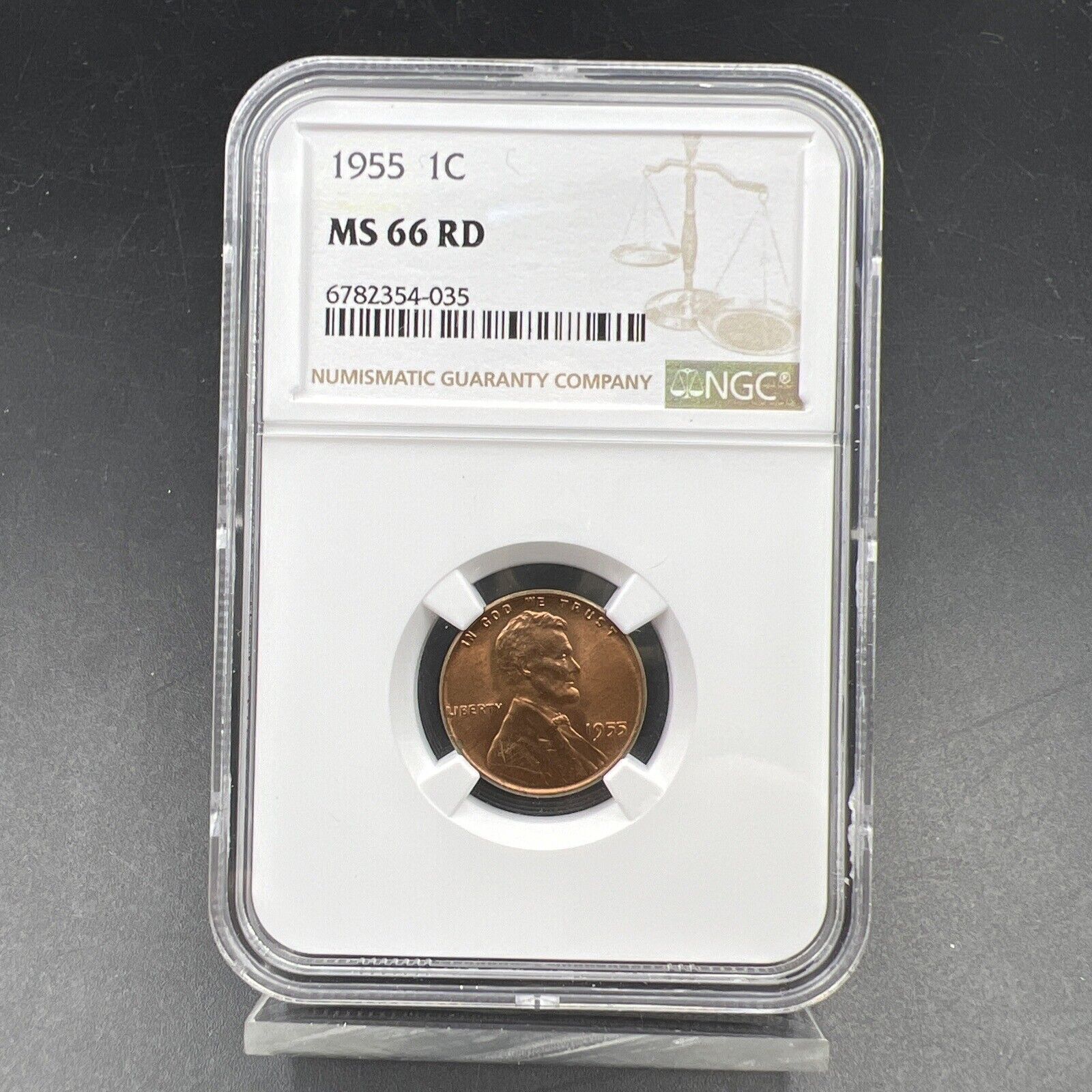 1955 P Lincoln Wheat Cent Penny Coin NGC MS66 RD Gem BU Certified Some Toning
