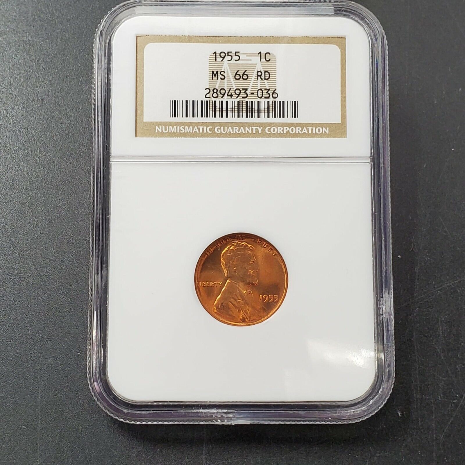 1955 P Lincoln Wheat Cent Penny Coin NGC MS66 RD RED BIG Die Crack @Head Variety