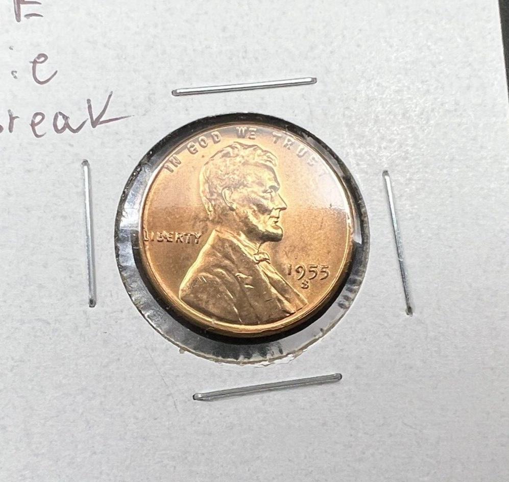 1955 S Lincoln Wheat Cent Penny BU RB Die chips in Liberty