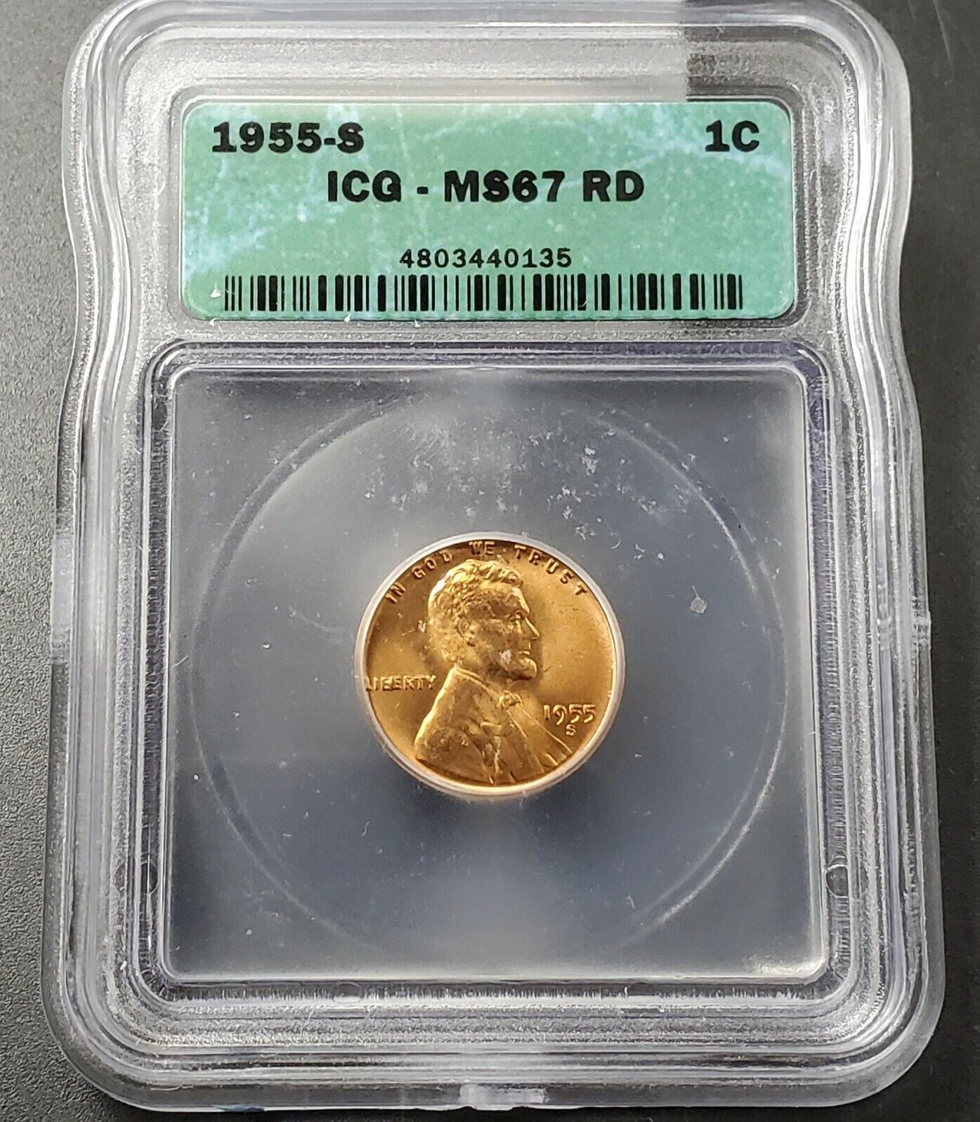 1955 S Lincoln Wheat Cent Variety Coin ICG MS67 RED RD MAJOR DIE CHIPS @ LIBERTY