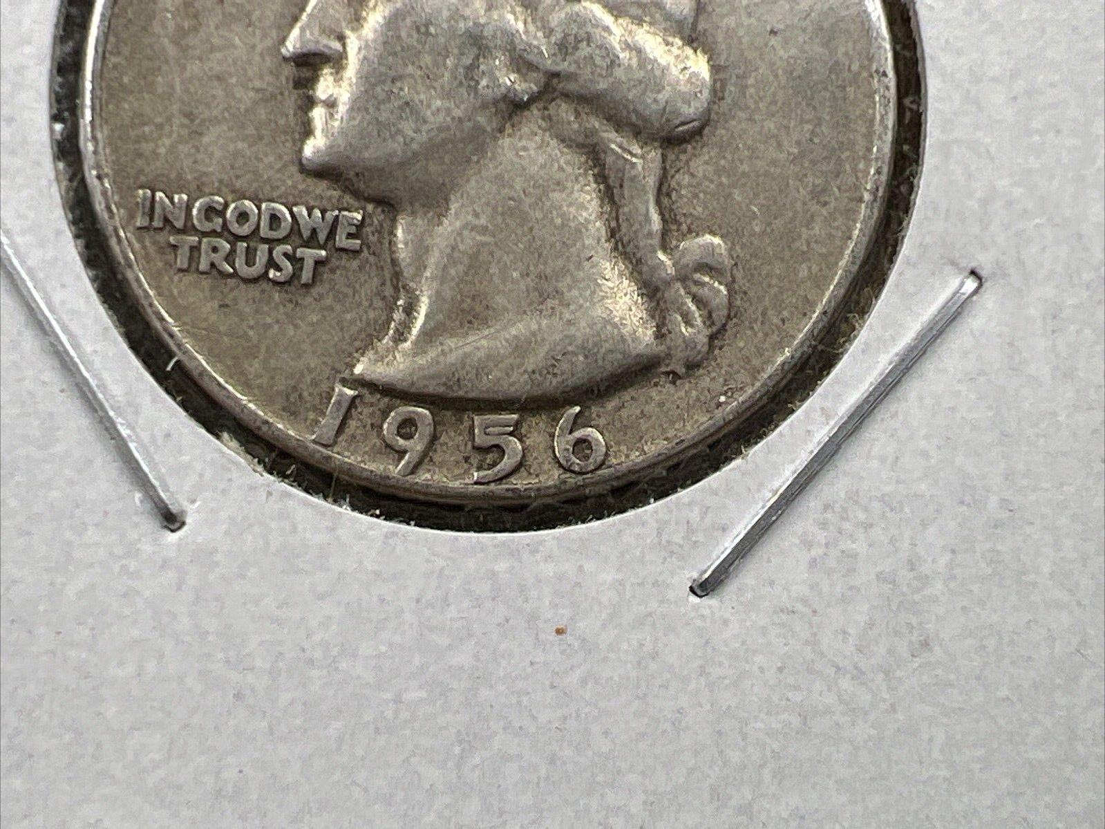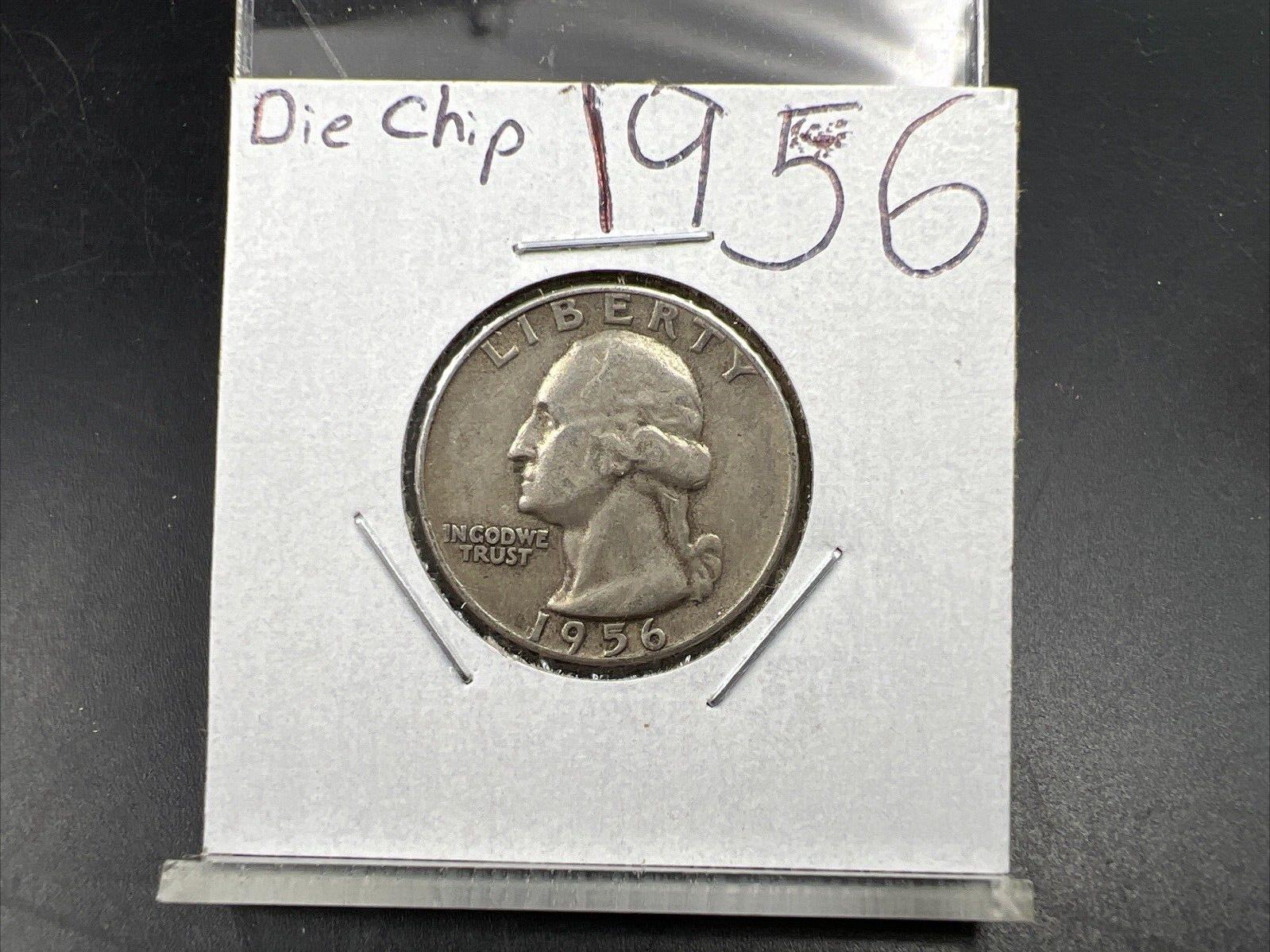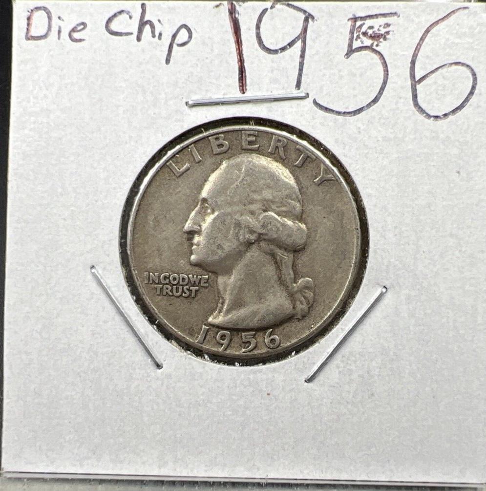 1956 25c Washington Silver Quarter Coin Die Chip In Date Error Variety VF