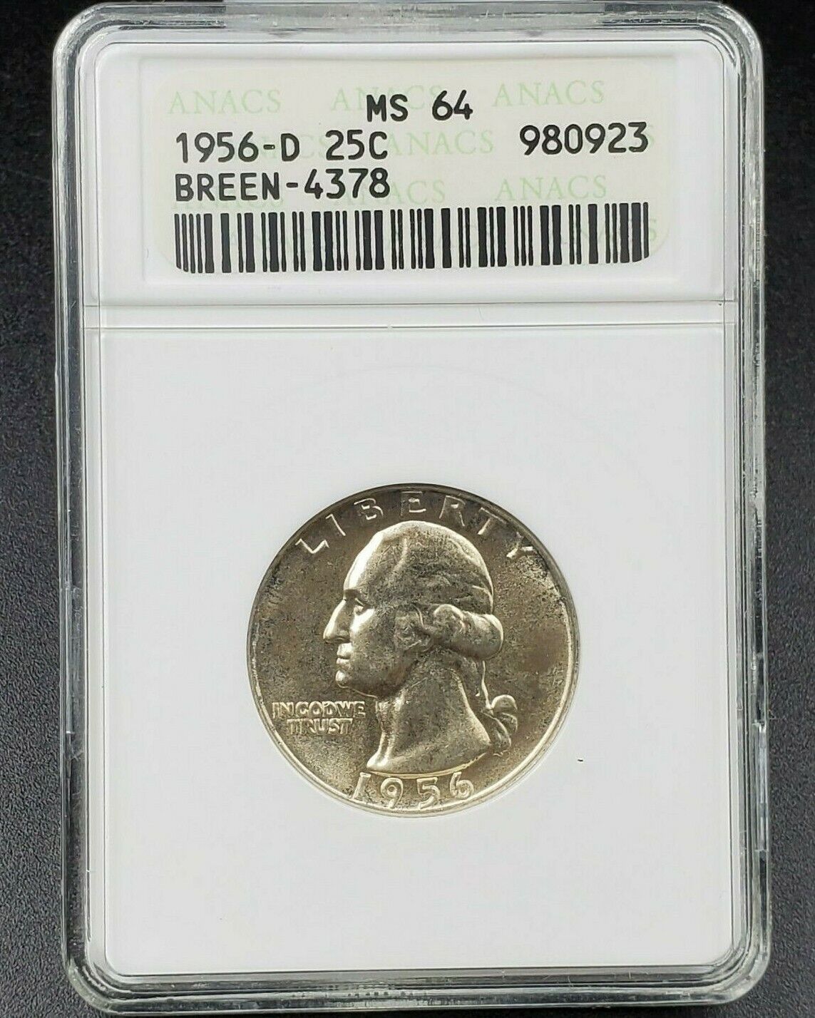 1956 D D/D 25c Washington Quarter Variety MS64 ANACS Breen-4378 D/Horizontal D