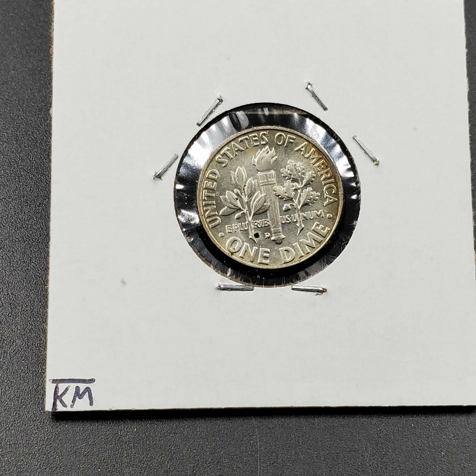 1956 D Roosevelt Silver Dime Coin Average UNC Neat Amber Toner Toning Denver