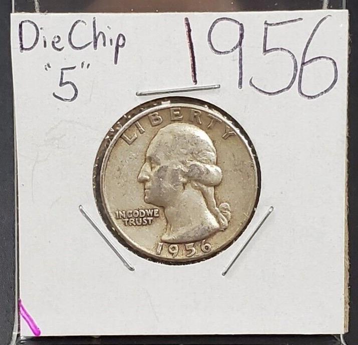 1956 P 25c Washington Quarter Coin Die Chip in Date OBV Variety