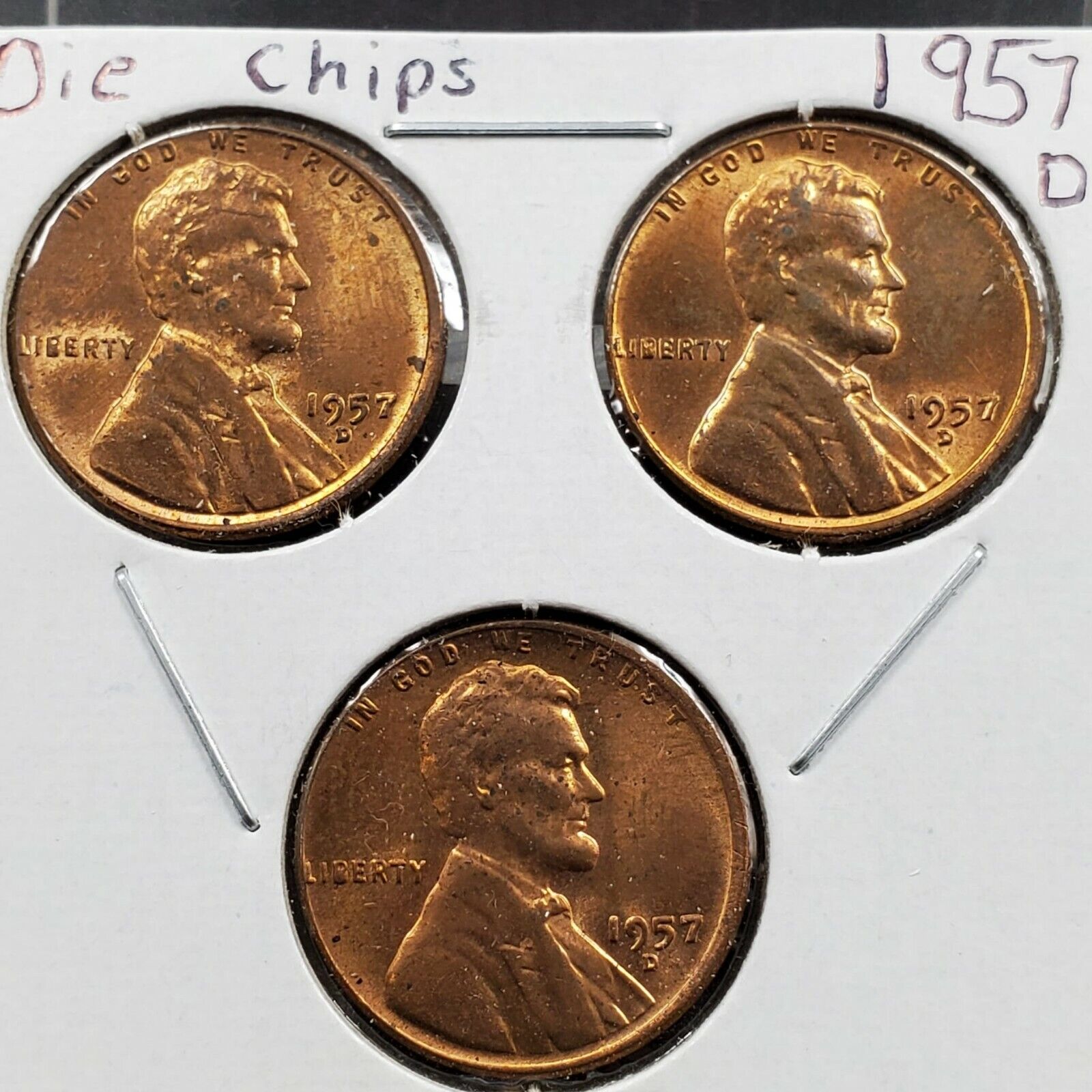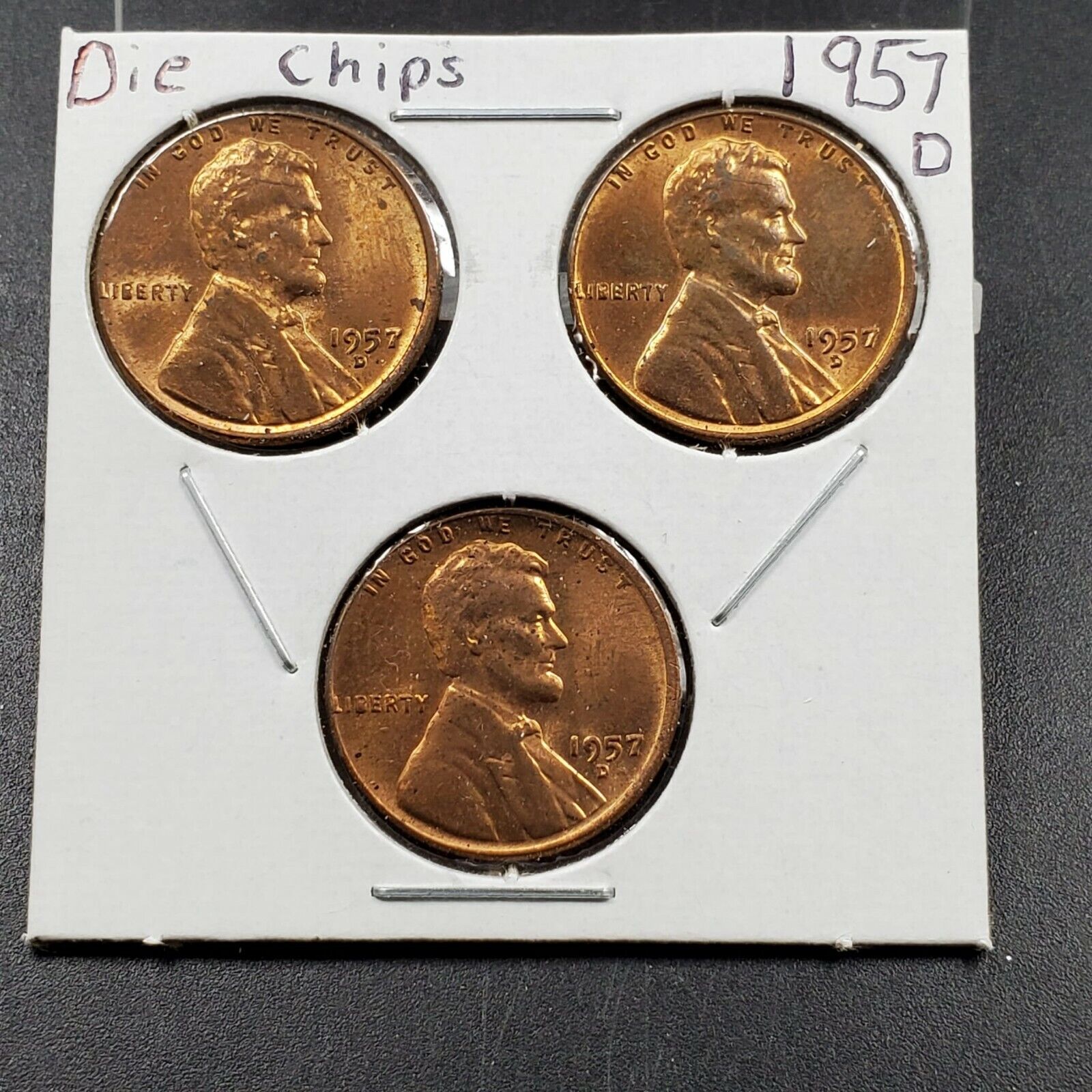 1957 D 1C Lincoln Cent Variety Trio Pack Die Chips AU / UNC 3 coins
