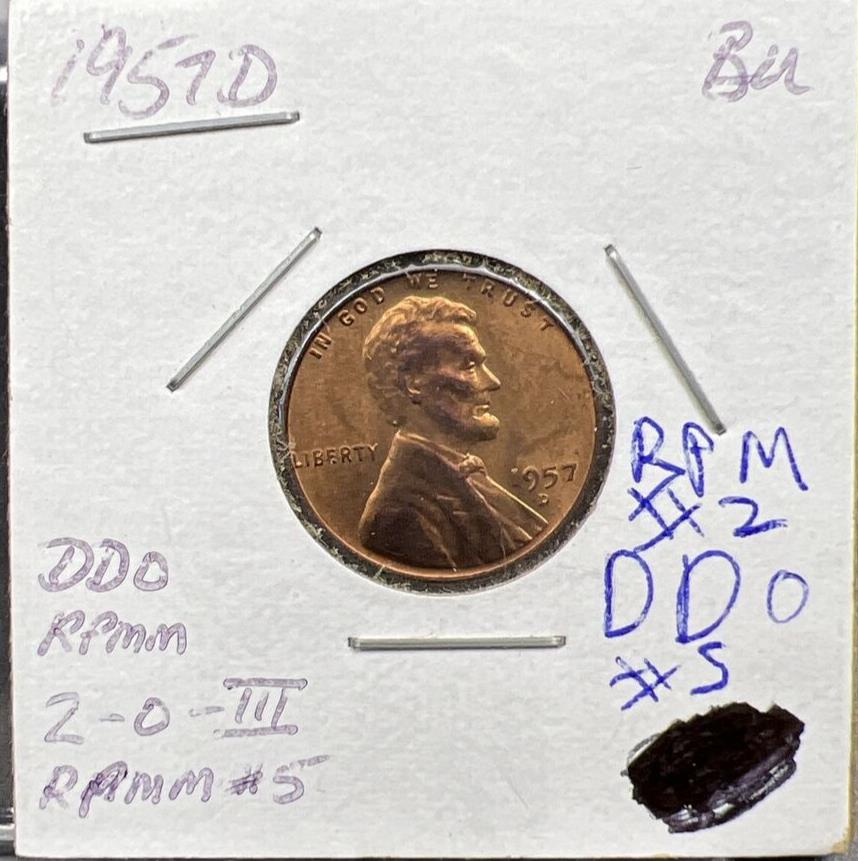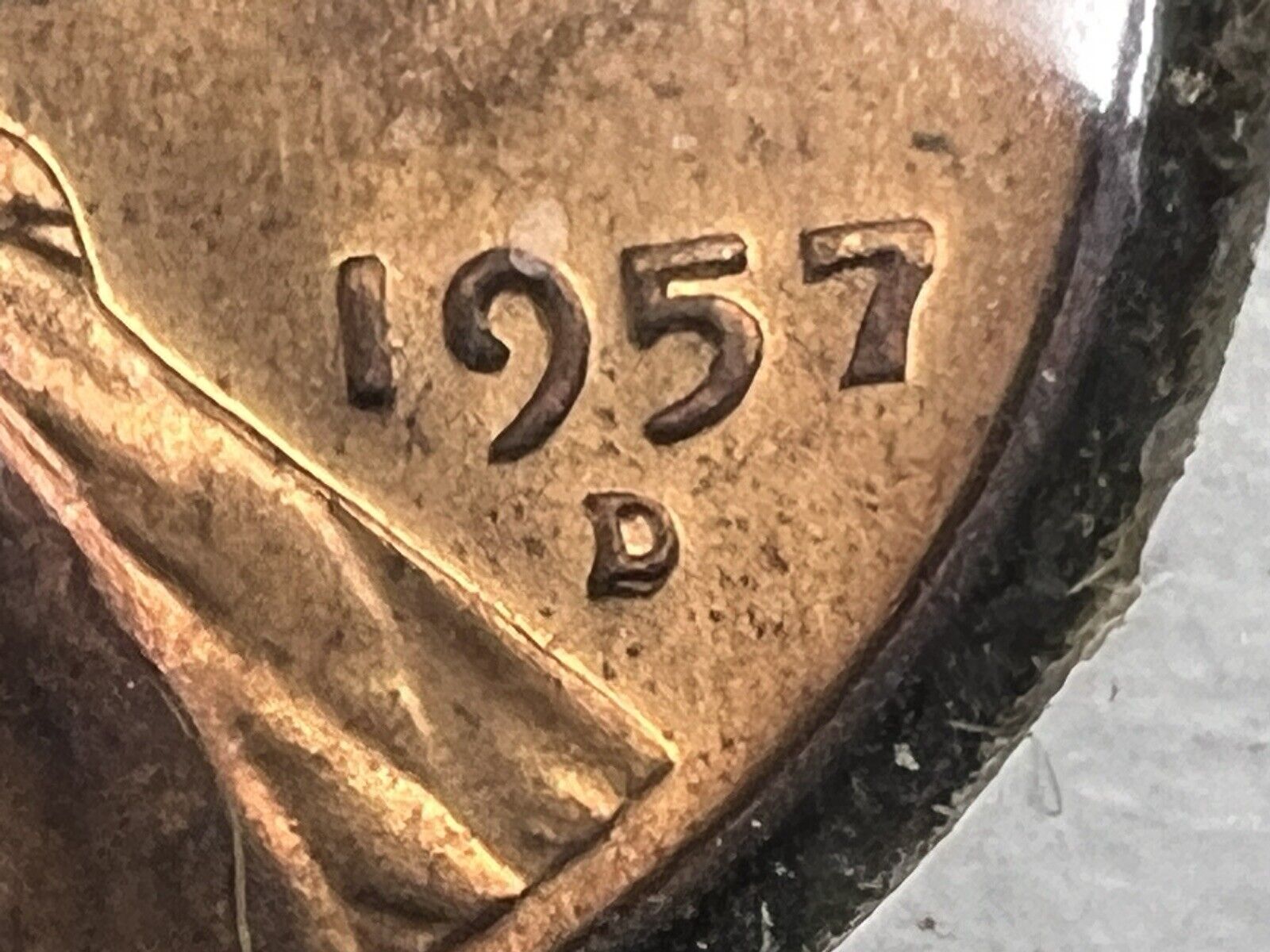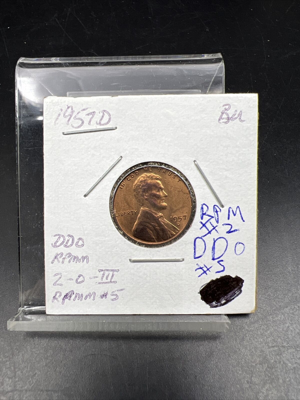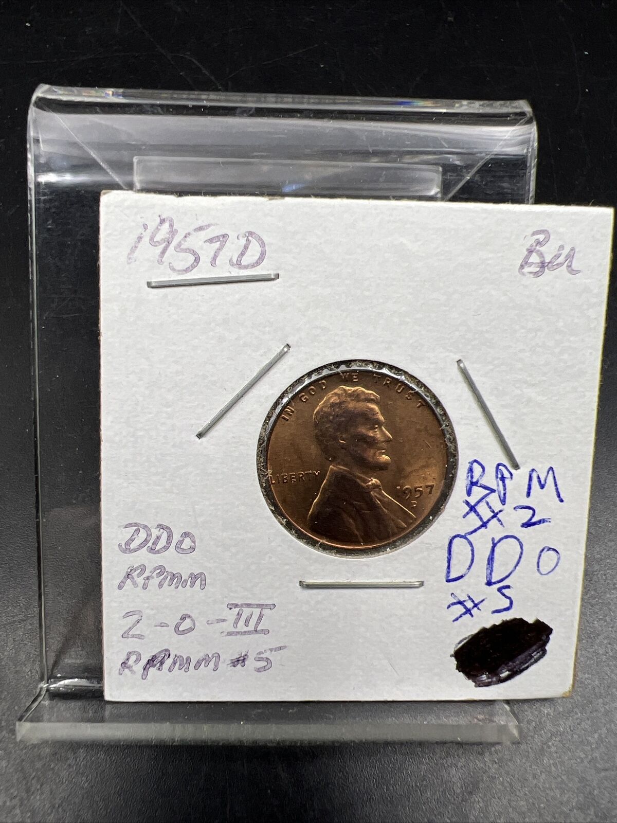 1957 D 1c Lincoln Wheat Cent Penny BU RB DDO #5 RPM #2 Variety