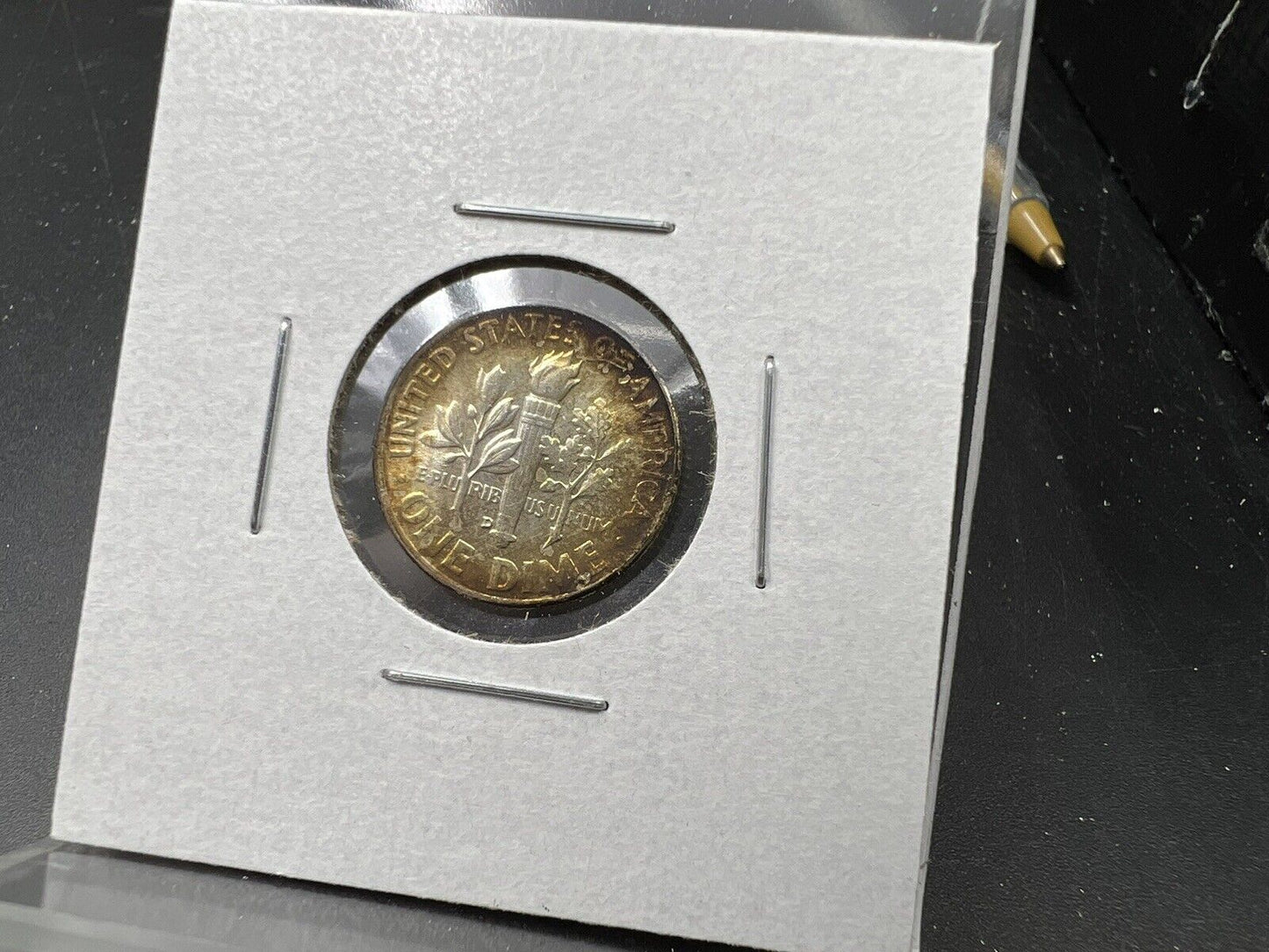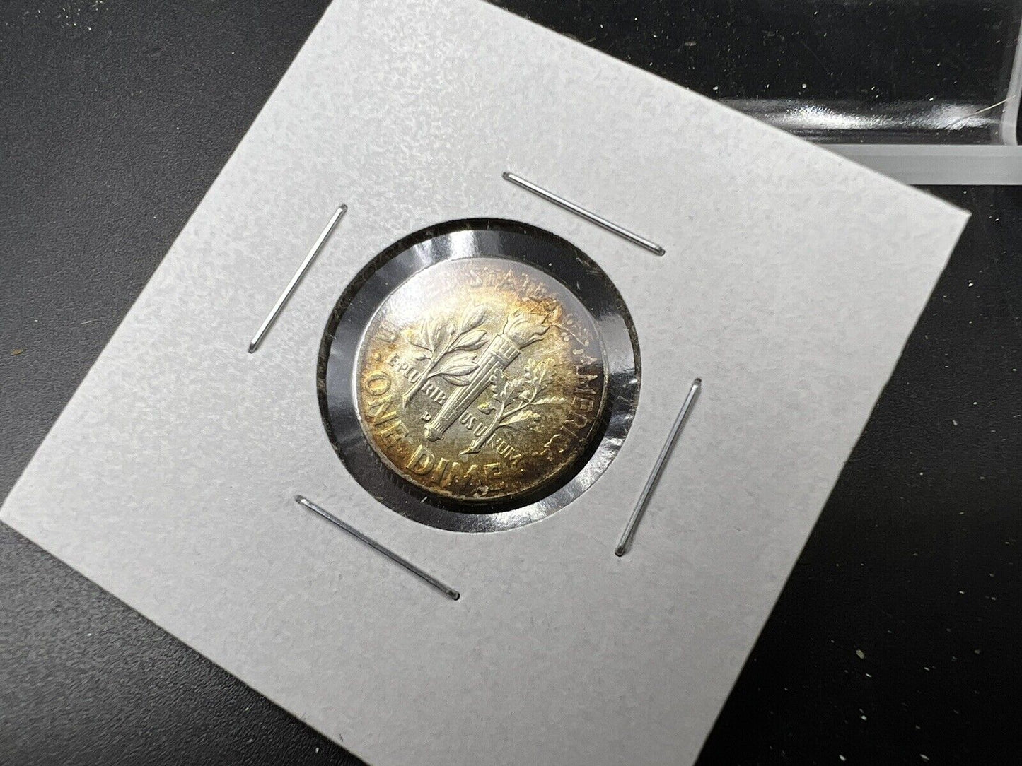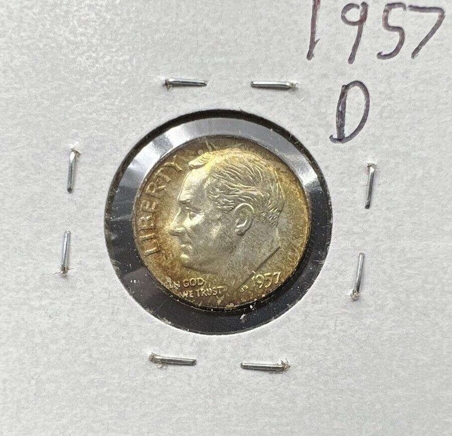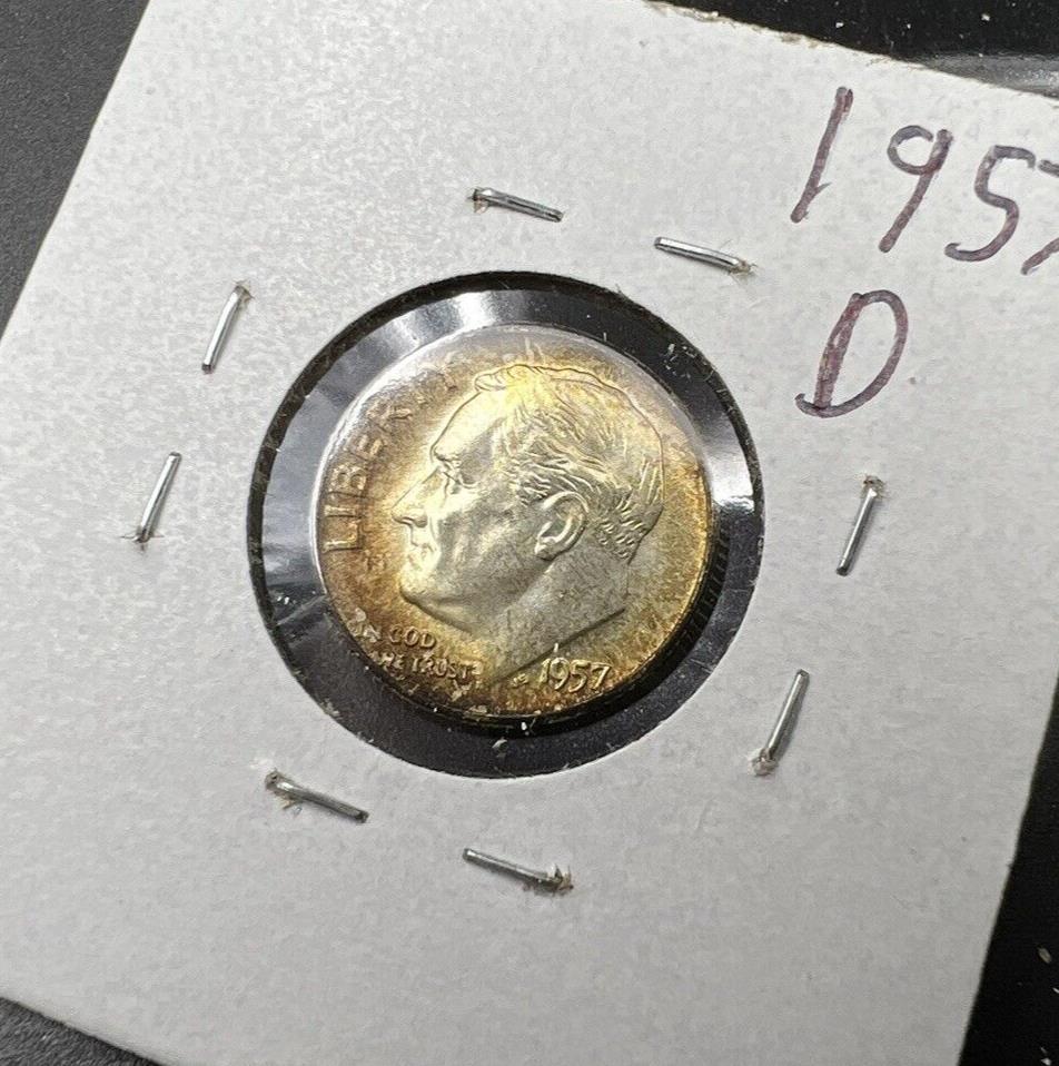 1957 D Roosevelt Silver Dime Coin BU UNC NICE Amber Toning Toner
