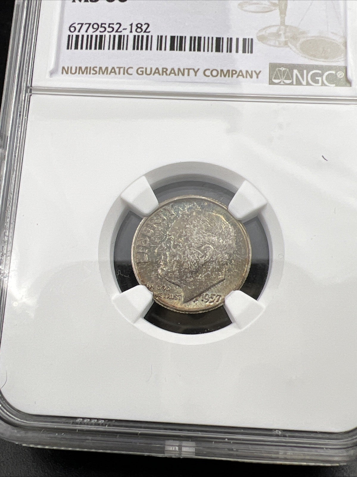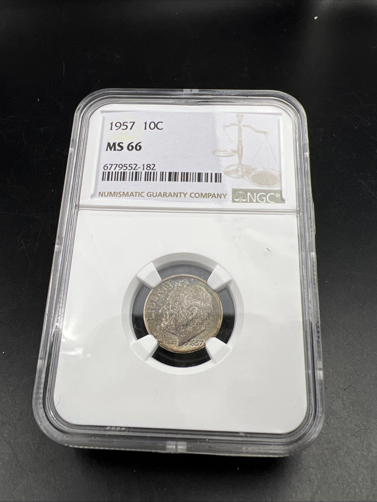 1957 P 10c Roosevelt Silver Dime Coin MS66 NGC Gem BU Certified #182 Nice Toning
