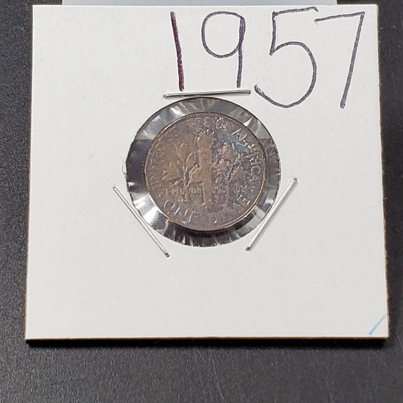 1957 P Roosevelt Silver Dime Coin Toning Toner Choice AU Nice Coin