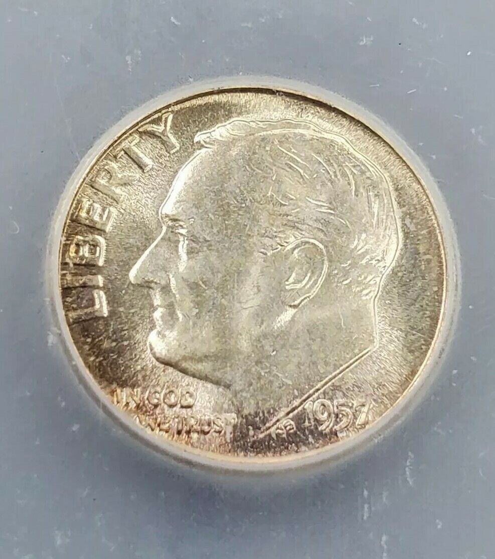 1957 P Roosevelt Silver Dime Coin Vintage ICG MS67 Gem BU NEAT Toner Toning