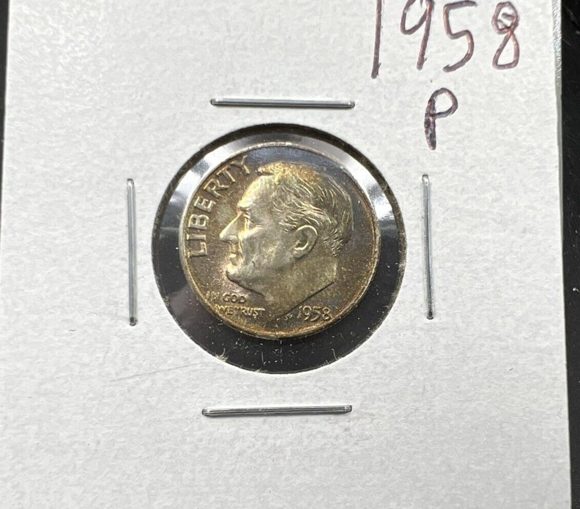 1958 P Roosevelt Silver Dime Coin BU UNC Nice Toning Toner