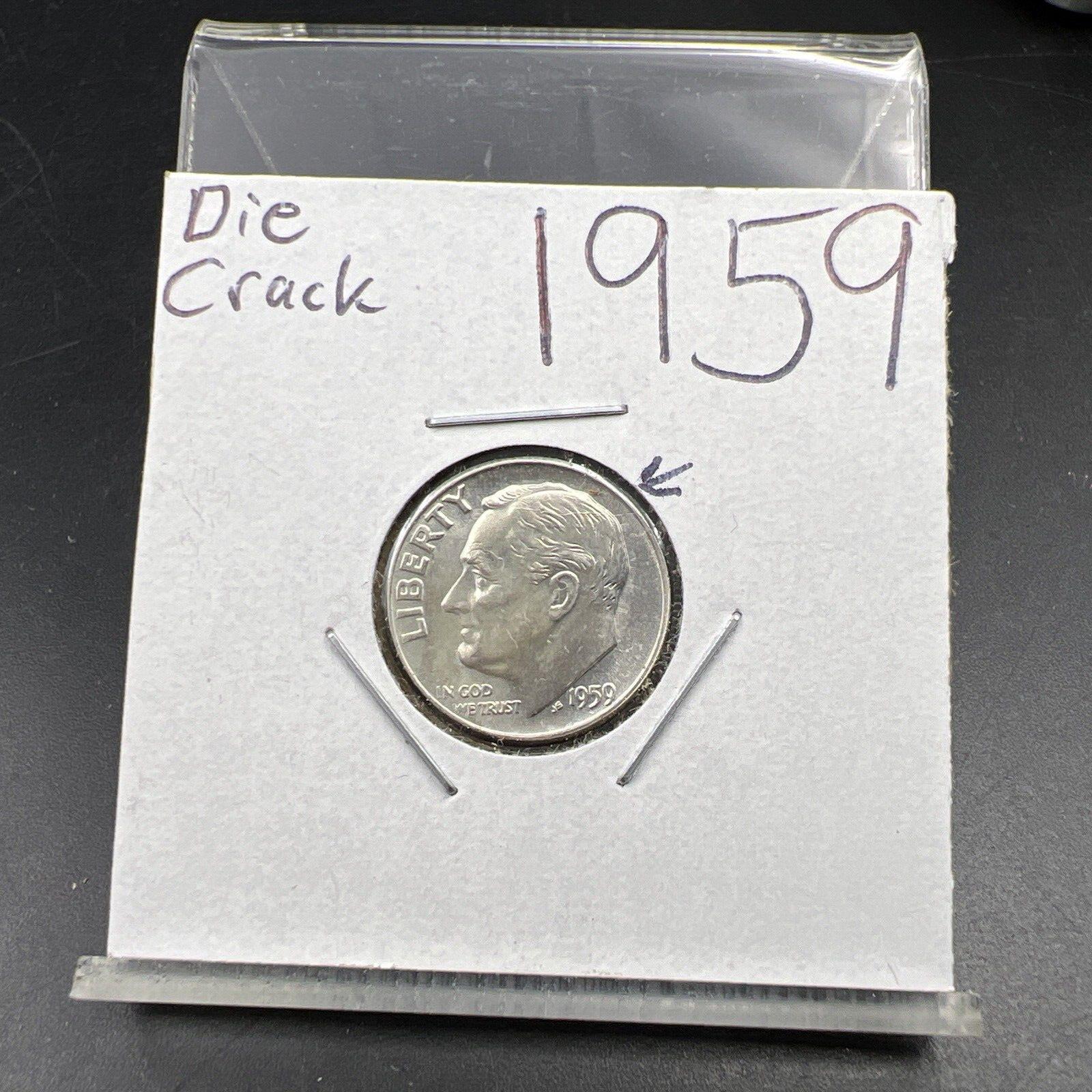 1959 10c Roosevelt Silver Dime CH AU / CU w/ Die Crack Variety Obverse