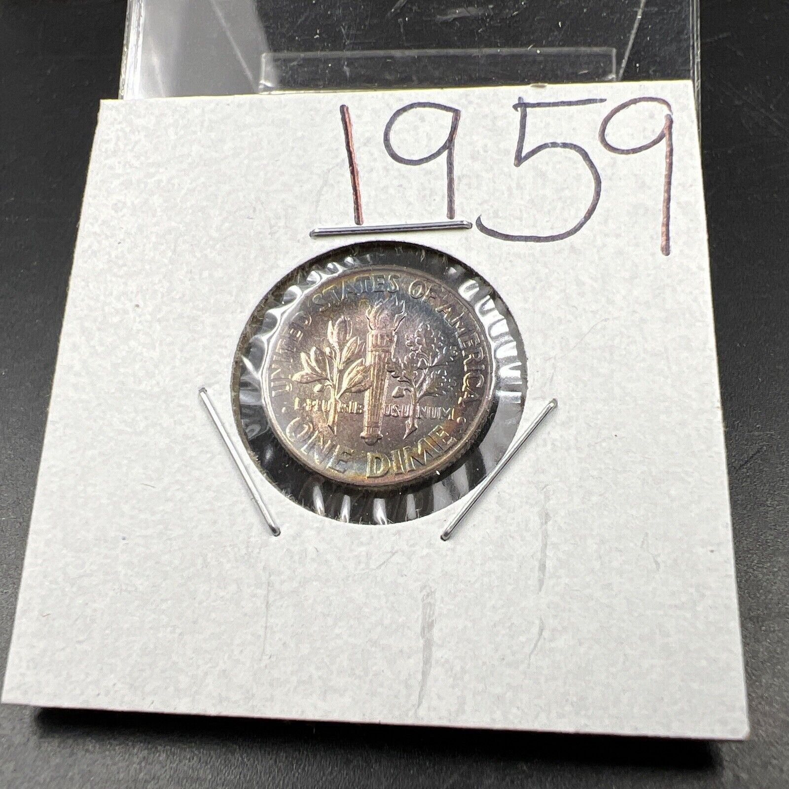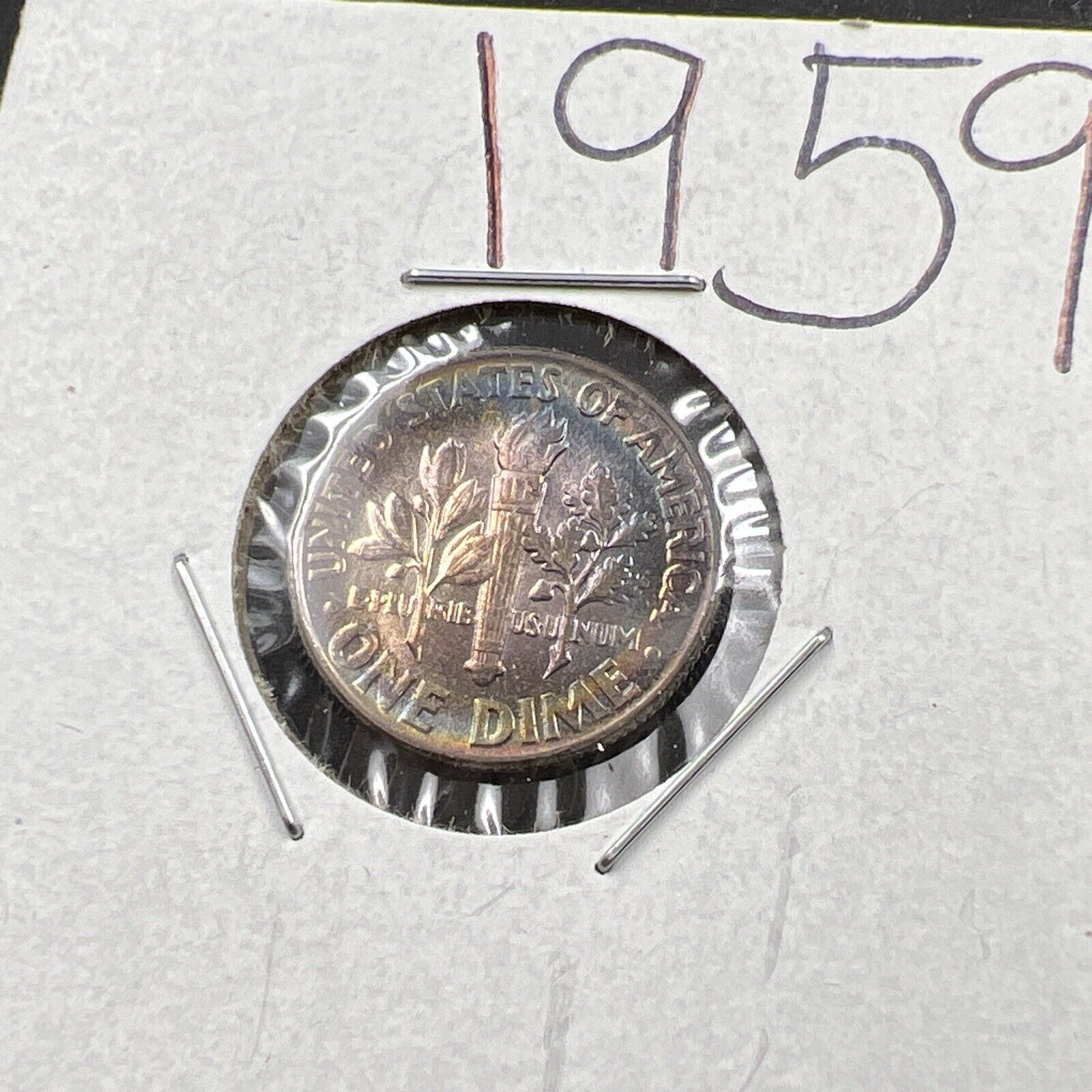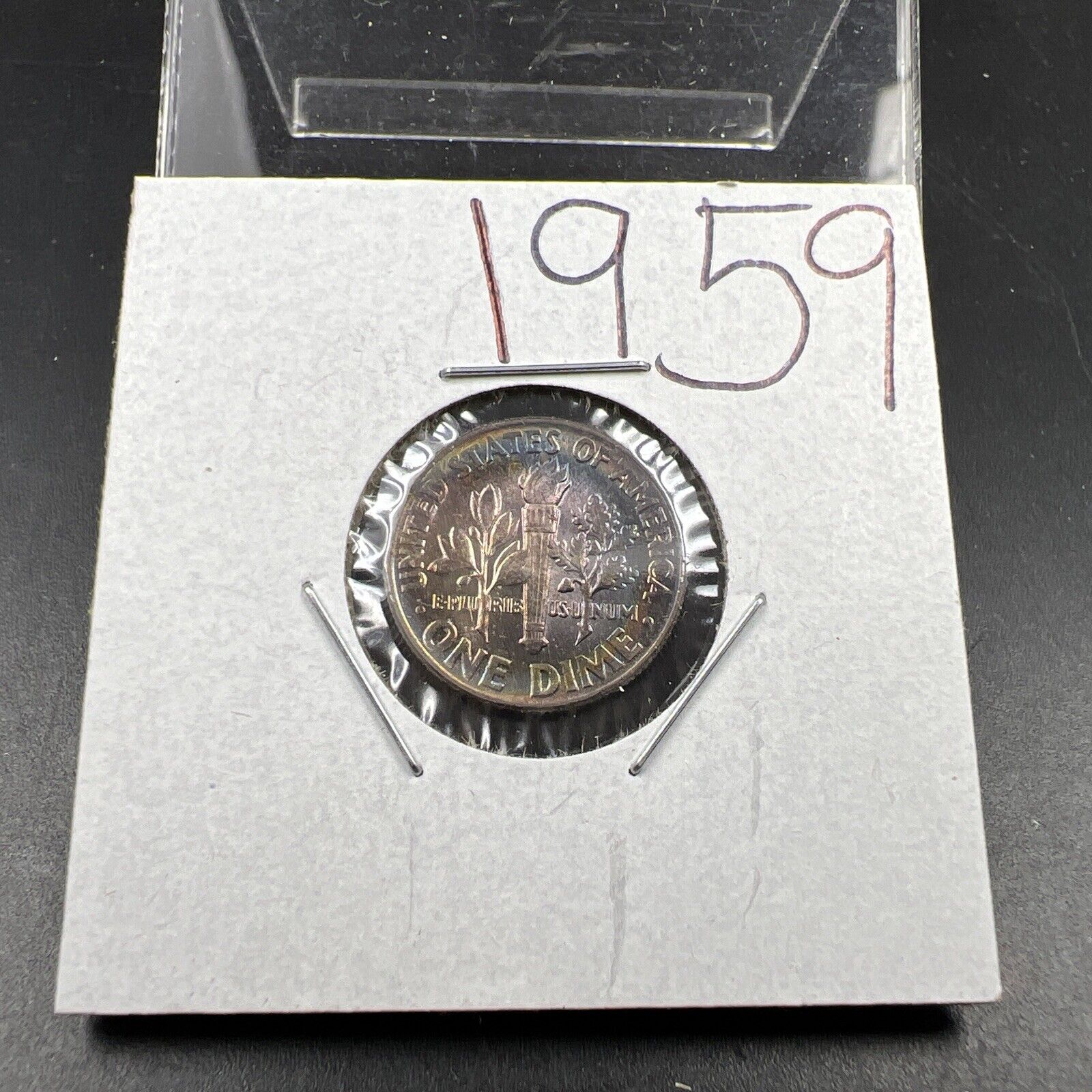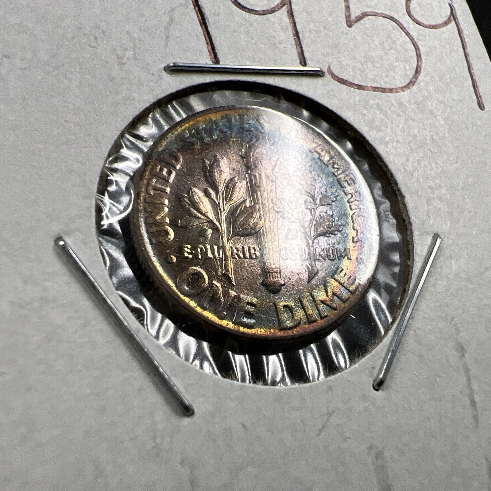 1959 P 10c Roosevelt Dime Coin CH BU PQ Pink Blue Original Toning Toner SKU#GN3