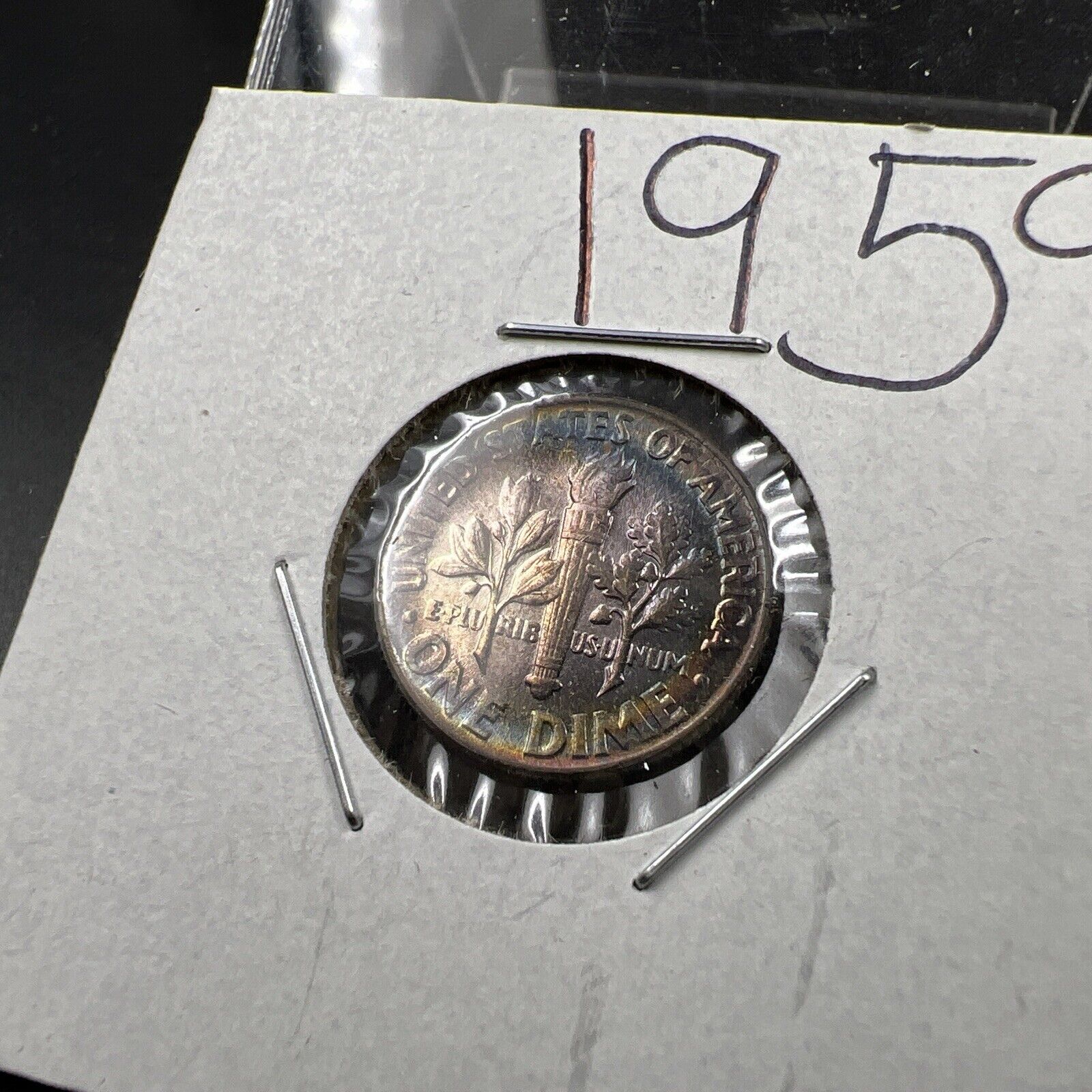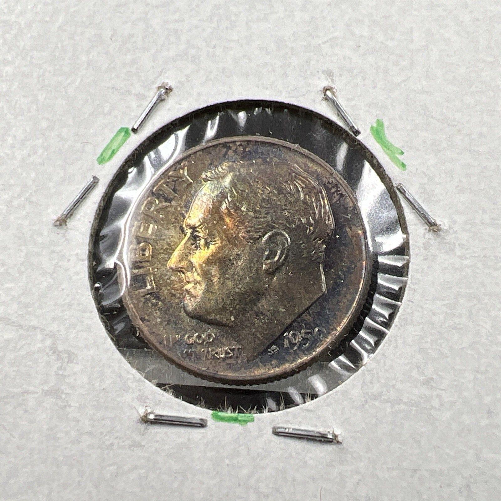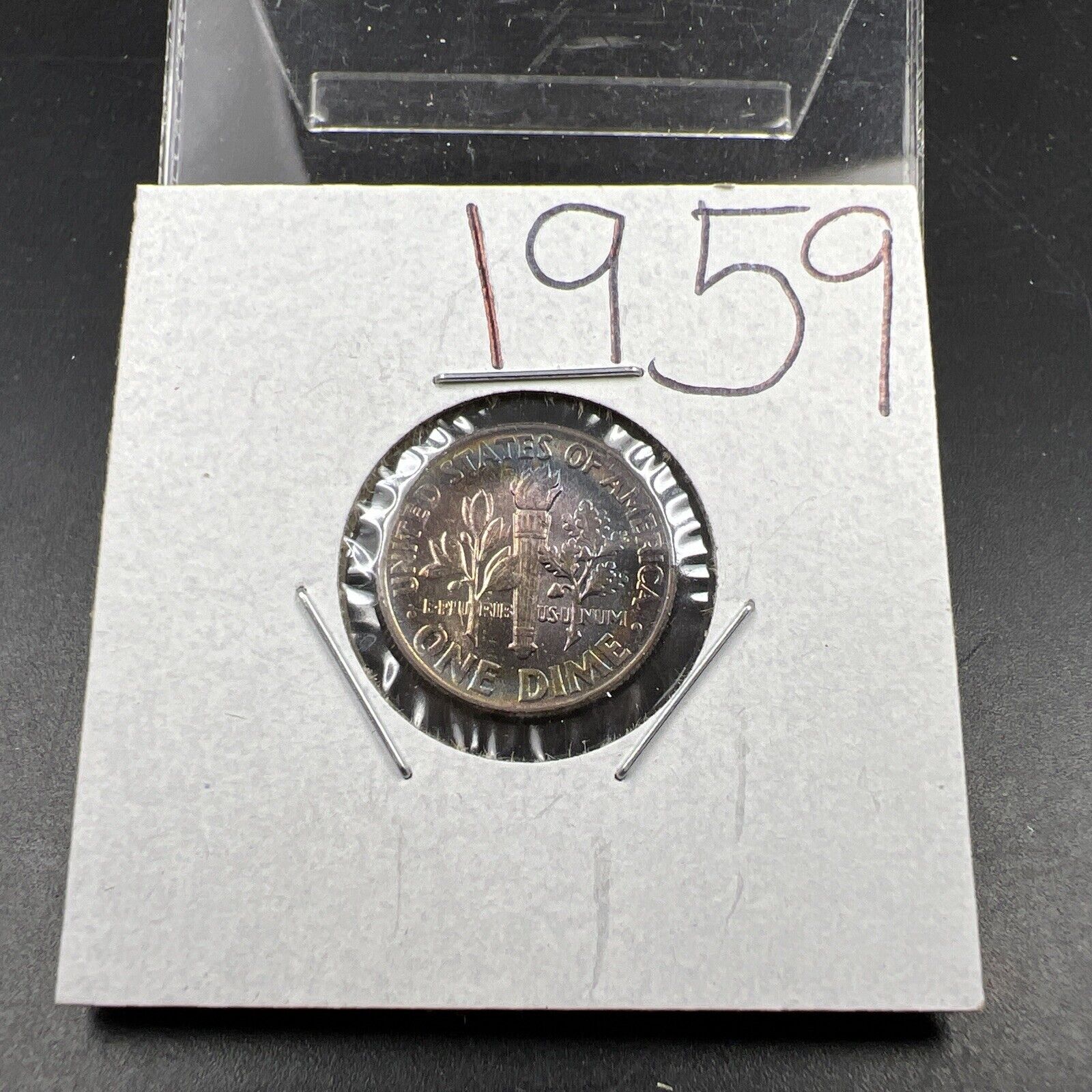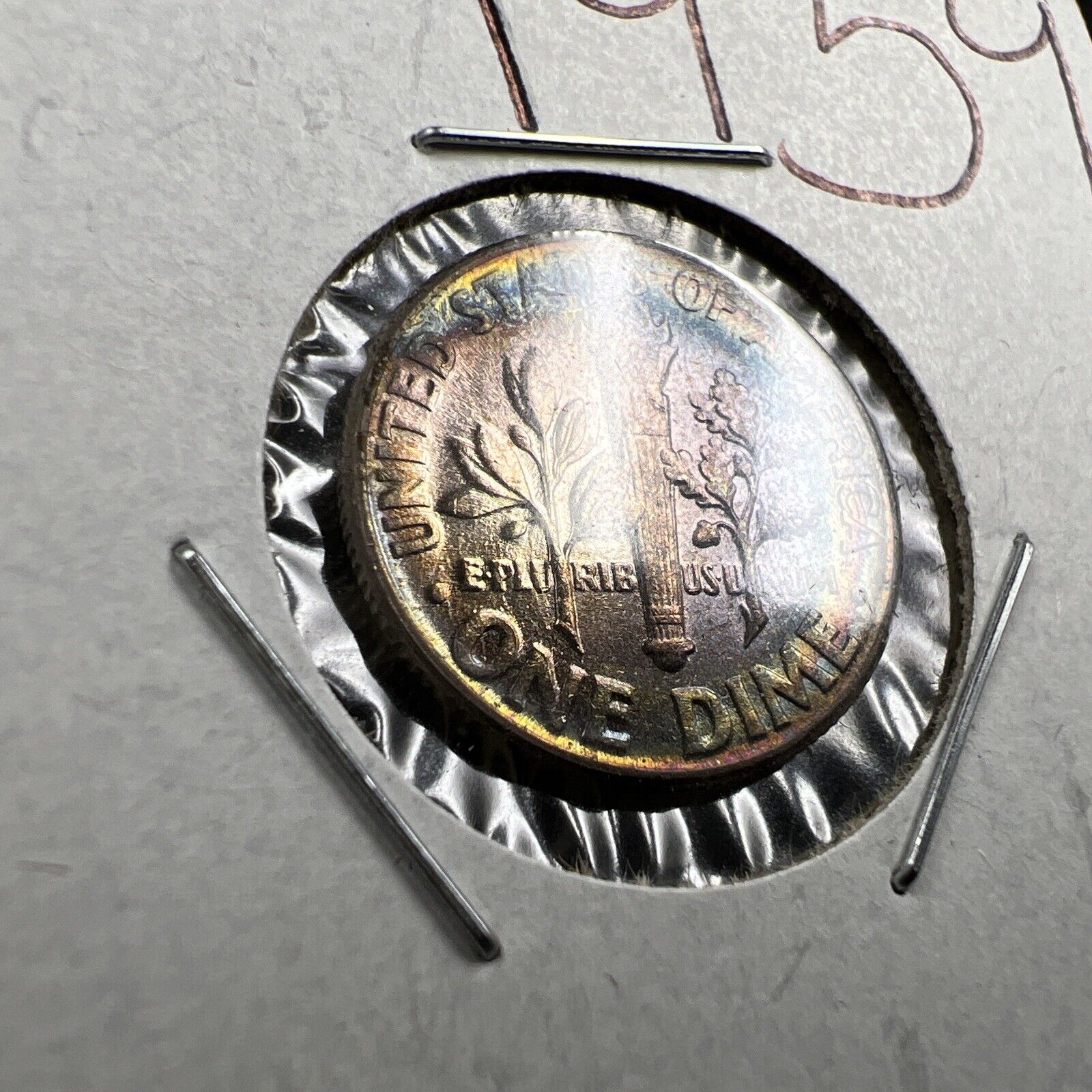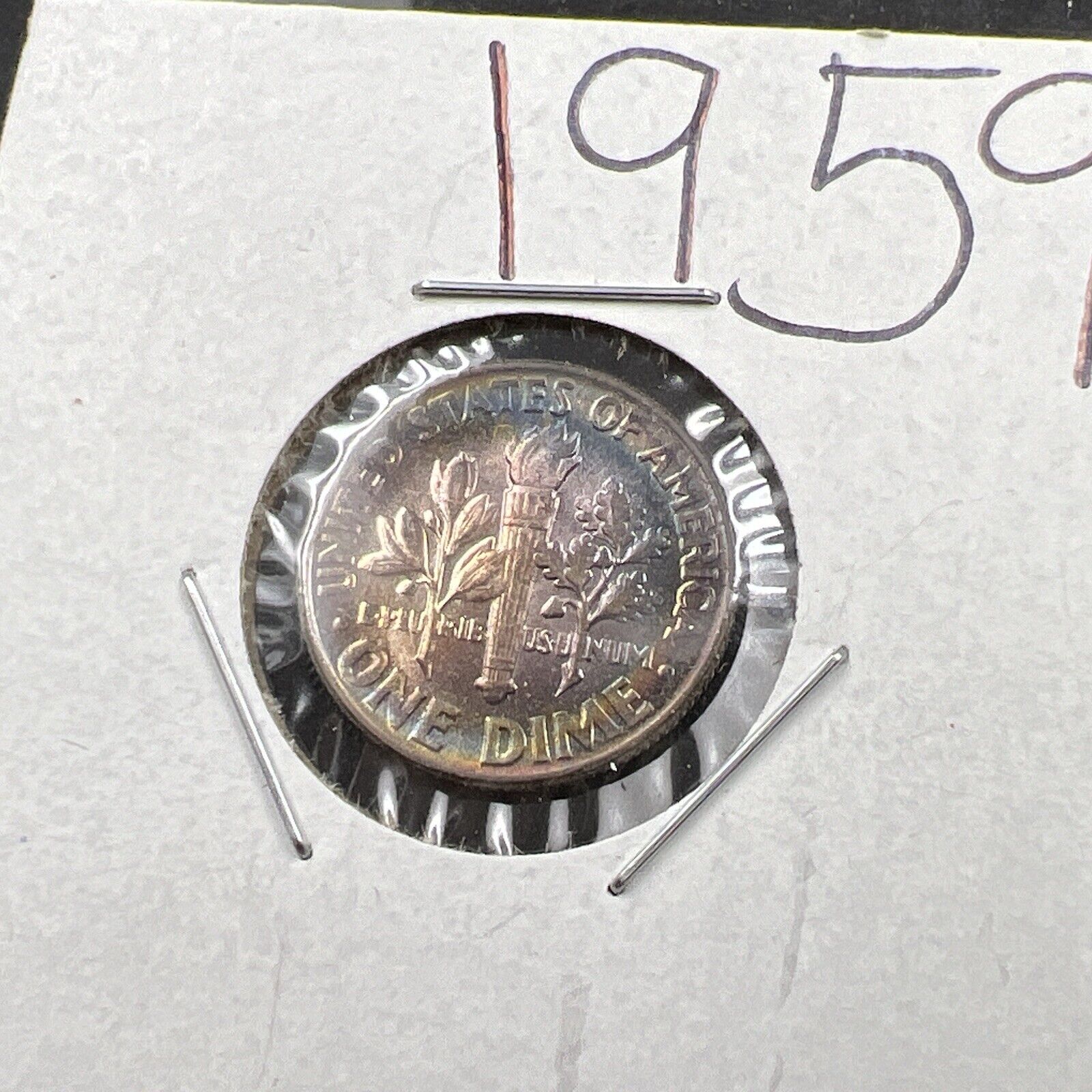 1959 P 10c Roosevelt Dime Coin CH BU PQ Pink Blue Original Toning Toner SKU#GN3