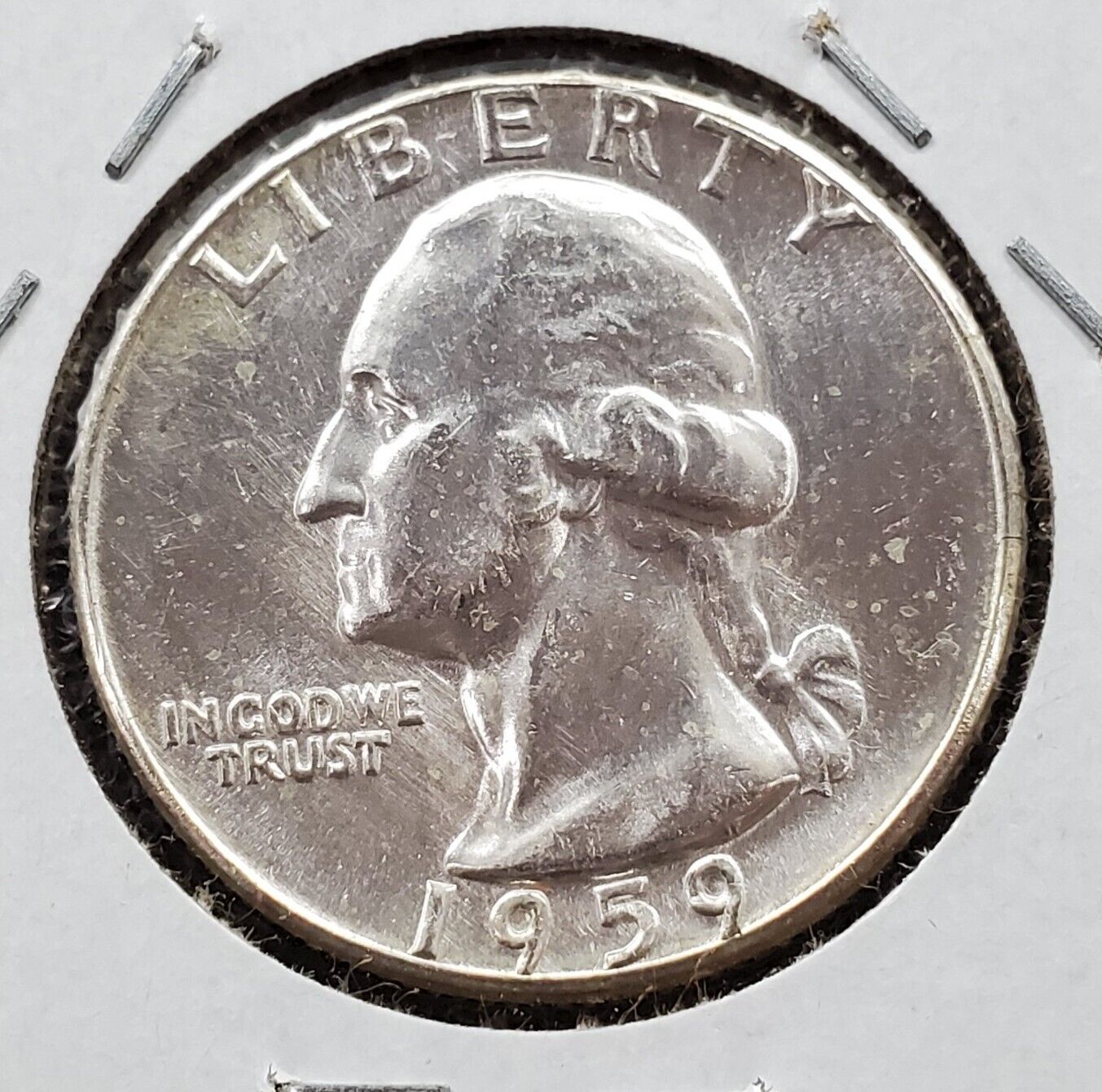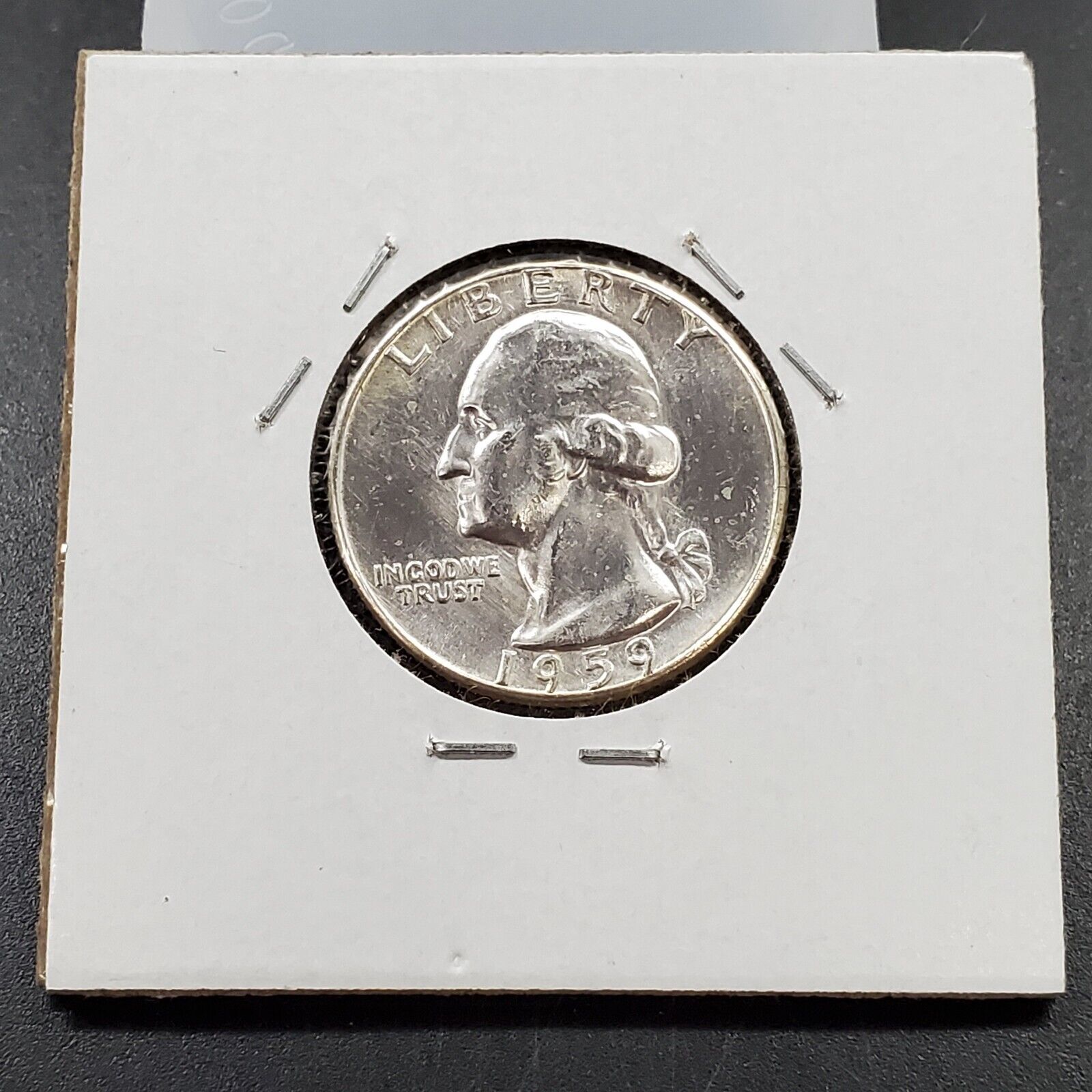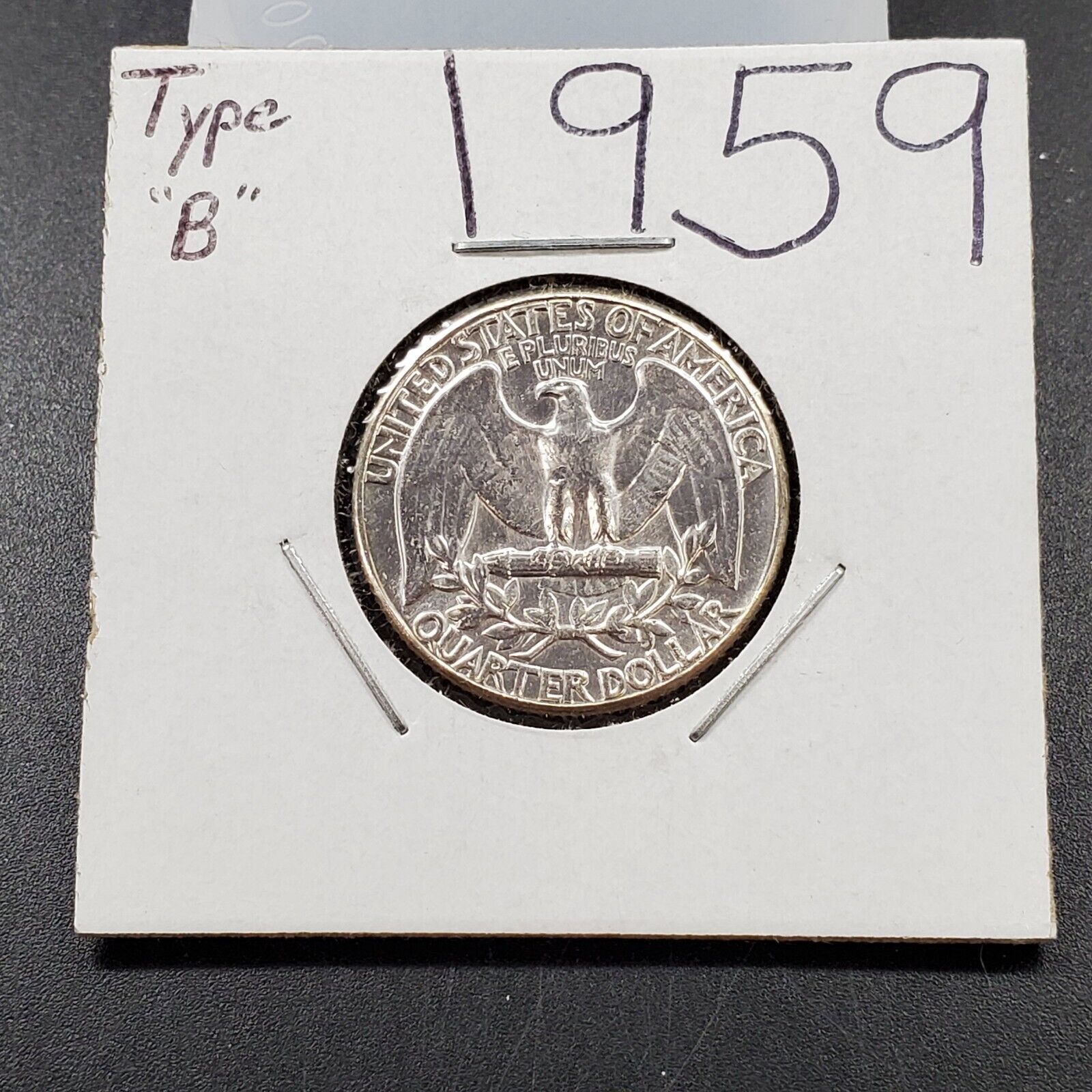 1959 P 25C Washington Quarter Silver Coin BU Uncirculated Type B Variety