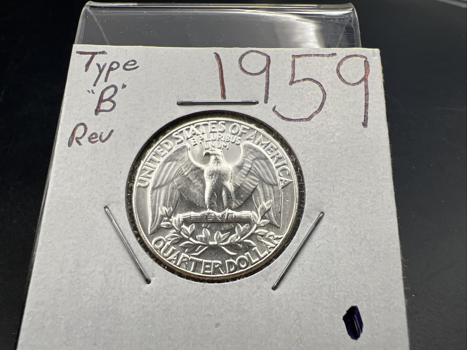 1959 P 25C Washington Quarter Silver Coin Choice BU Uncirculated Type B Rev SK#A