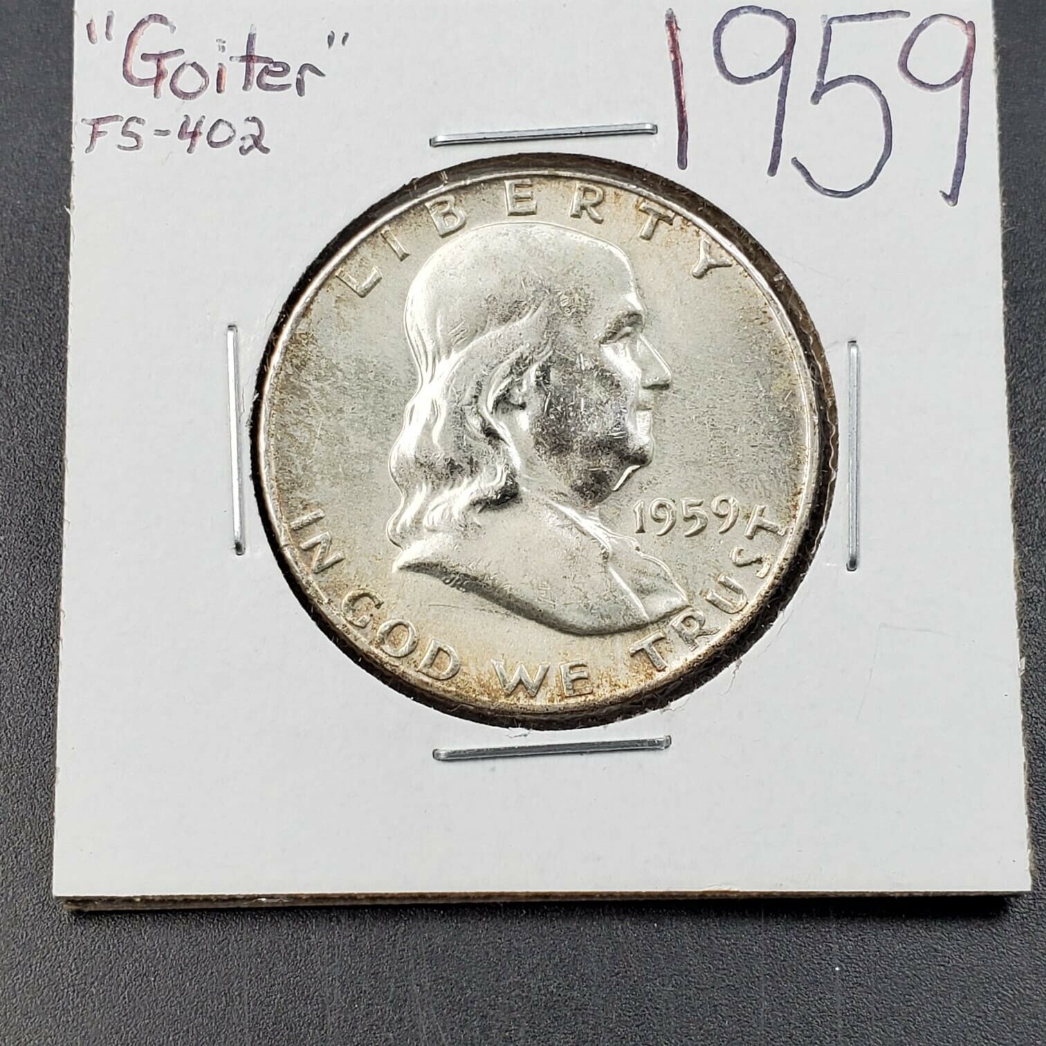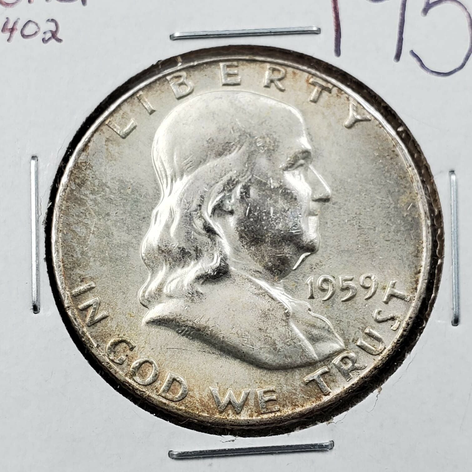 1959 P Franklin Silver Half Dollar BU Goiter FS-402 Variety FBL FULL BELL LINE