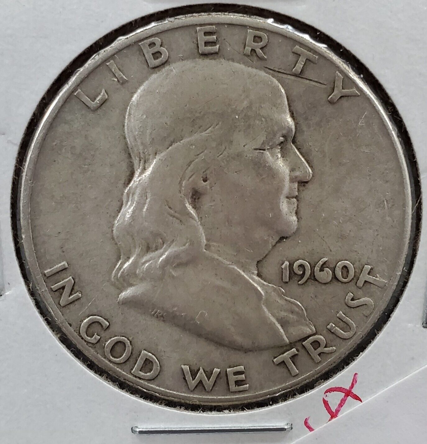 1960 D Franklin Silver Half Dollar Coin Circulated Die Chip "6"