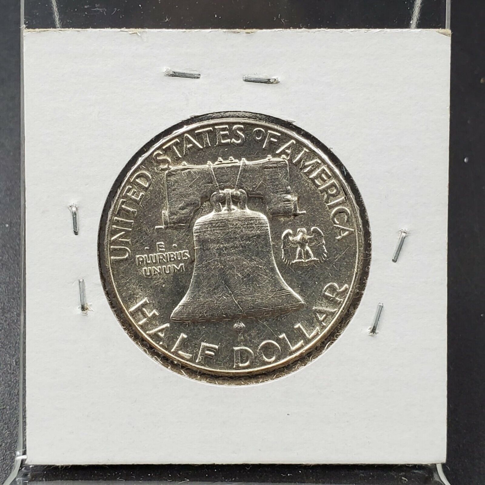 1960 D Franklin Silver Half Dollar Coin XF / AU with some toning circulated