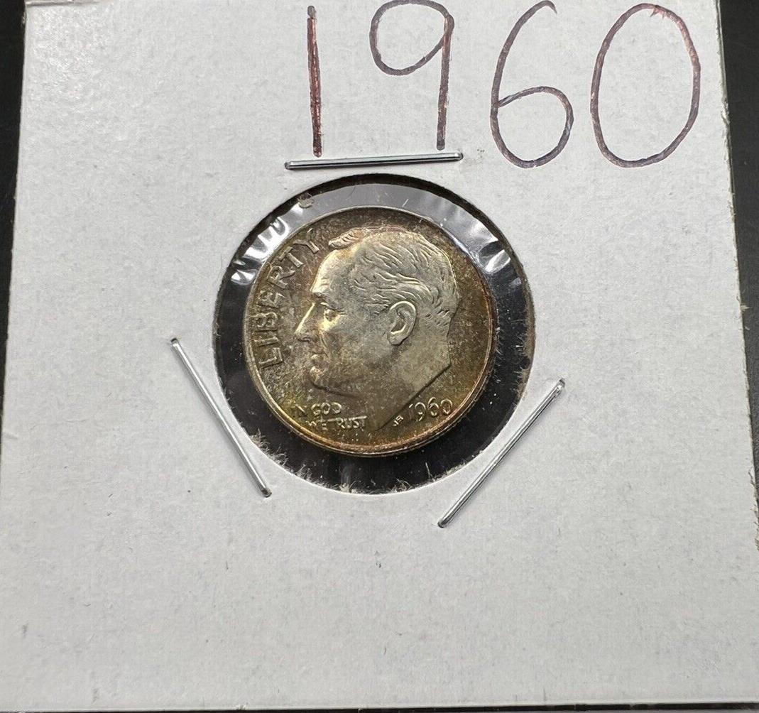 1960 P 10c Roosevelt Silver Dime Coin CH AU About UNC Neat Toning #AZ