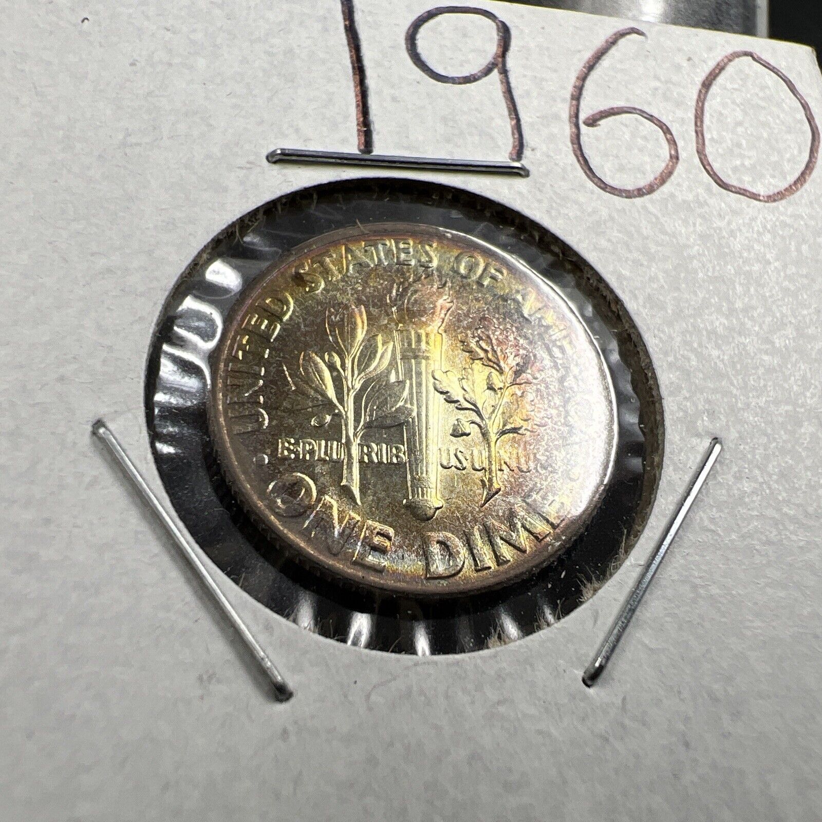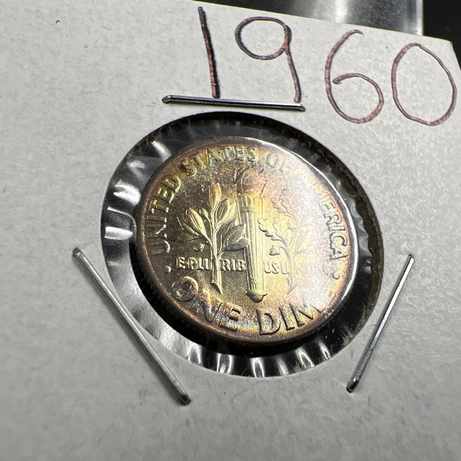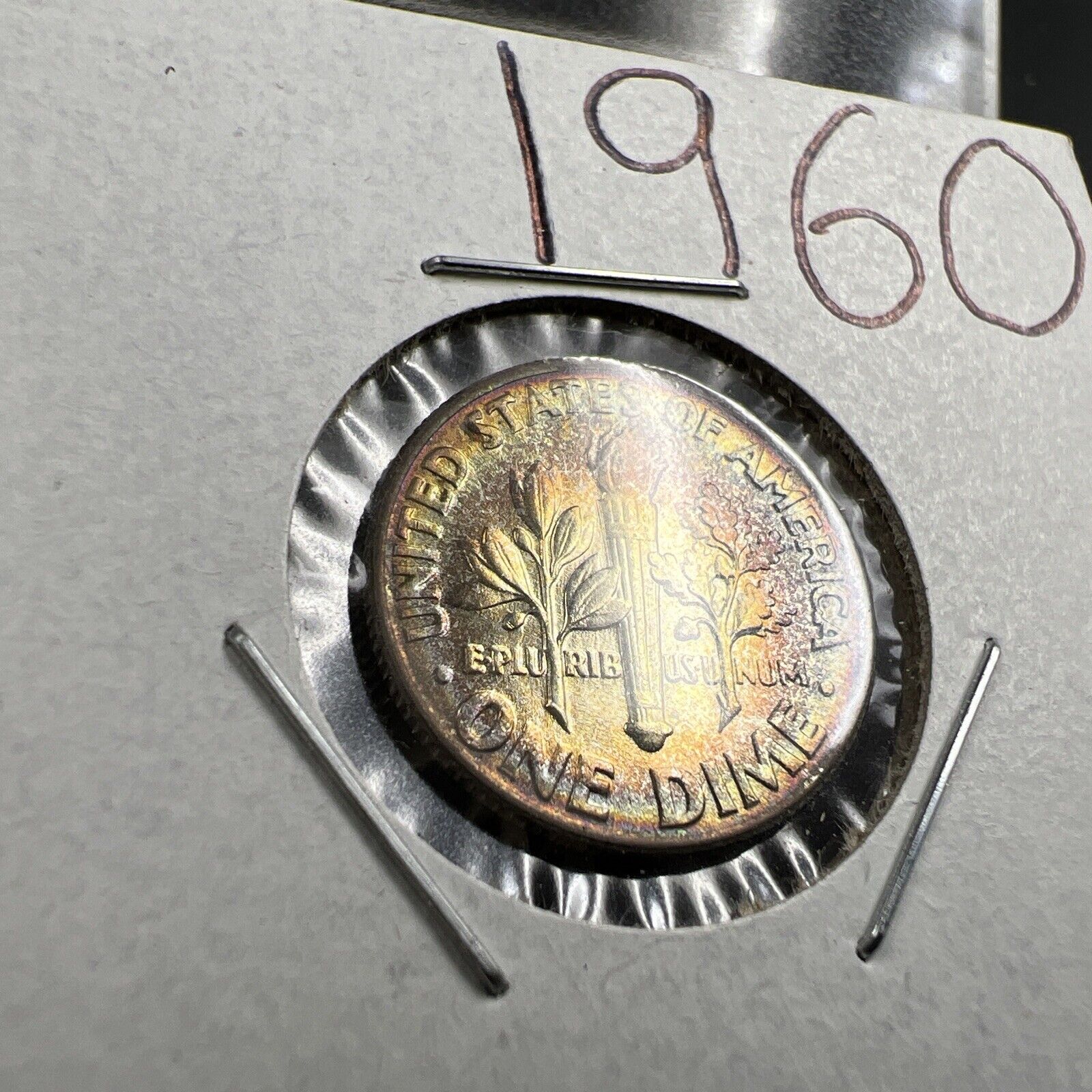 1960 P 10c Roosevelt Silver Dime Coin PQ * Rainbow Toning Toner GEM BU UNC